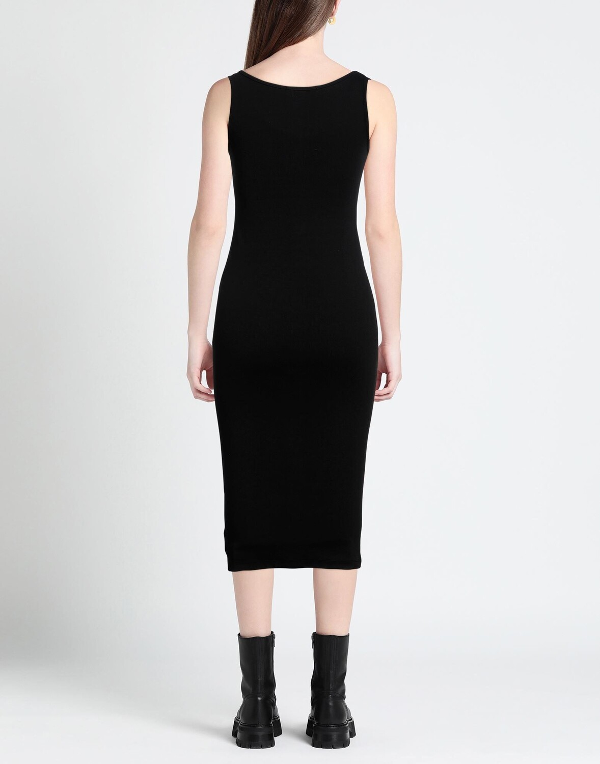 Джерси, ребристая ткань, логотип бренда, одноцветное изделие, круглый вырез, без рукавов, без подкладки, пуговицы, без карманов, стрейч, фасон-карандаш