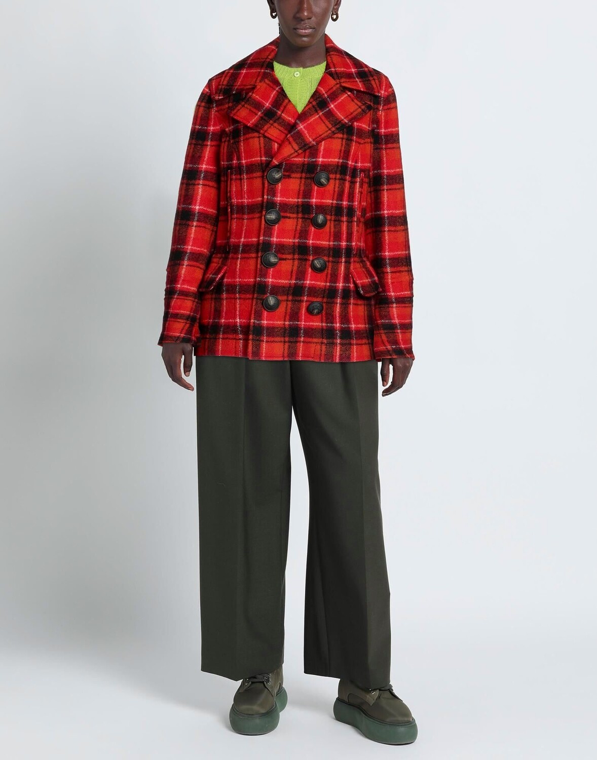 Фланель, без аппликаций, узор «тартан», воротник с лацканами, двубортный, длинные рукава, на подкладке, пуговицы, множество карманов, модель «кабан»