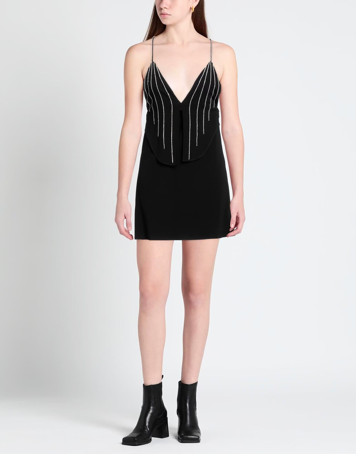 Креп, стразы, одноцветное изделие с аппликациями, глубокий вырез, без рукавов, на подкладке, застежка-молния, без карманов, фасон-карандаш, маленький размер
