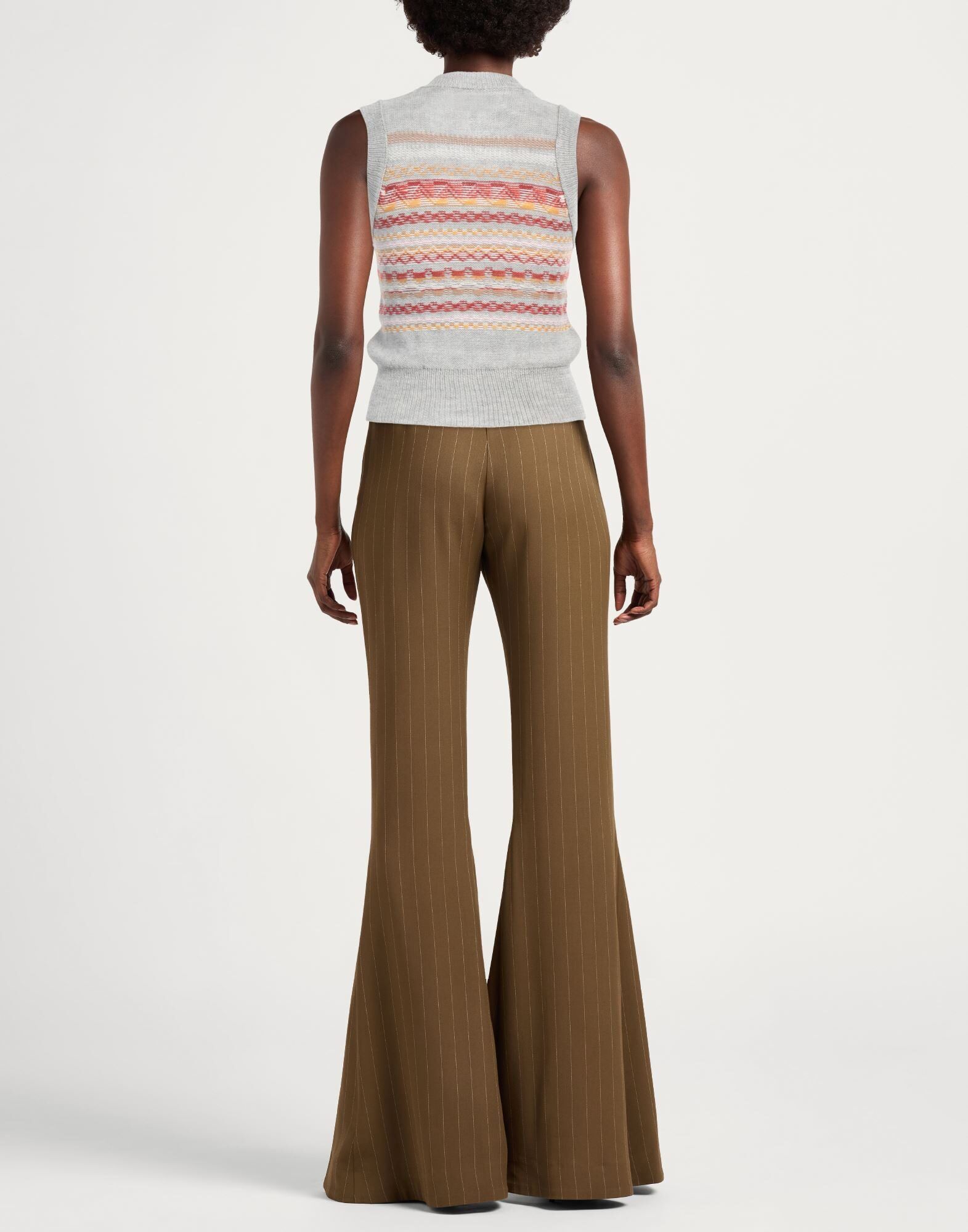 Трикотаж, легкая вязка, без аппликаций, разноцветный, V-образный вырез, без рукавов, без карманов, ручная стирка или химчистка, не отбеливать, не сушить в стиральной машине, большой тираж этой марки