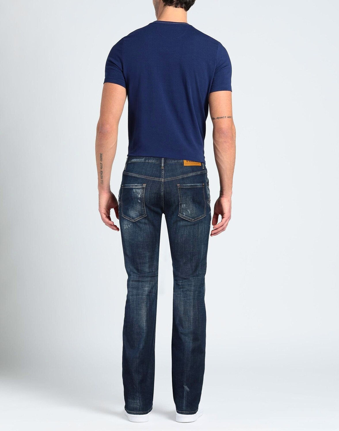 Деним, выцветший, логотип бренда, украшение, однотонный цвет с аппликациями, темная стирка, завышенная талия, расклешенные брючины, застежки на пуговицах, множество карманов, стрейч, машинная стирка, нельзя отбеливать, нельзя сушить в стиральной машине, содержит нетекстильные части животного происхождения , прямые джинсы
