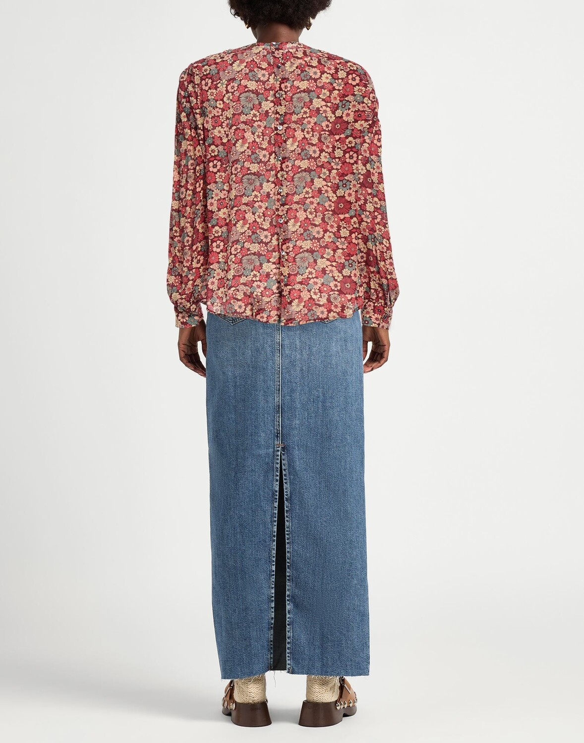 Богемная блузка, креп, логотип бренда, цветочный принт, круглый вырез, длинные рукава, манжеты на пуговицах, застежка на пуговицы, без карманов, химчистка, нельзя отбеливать, нельзя сушить в стиральной машине