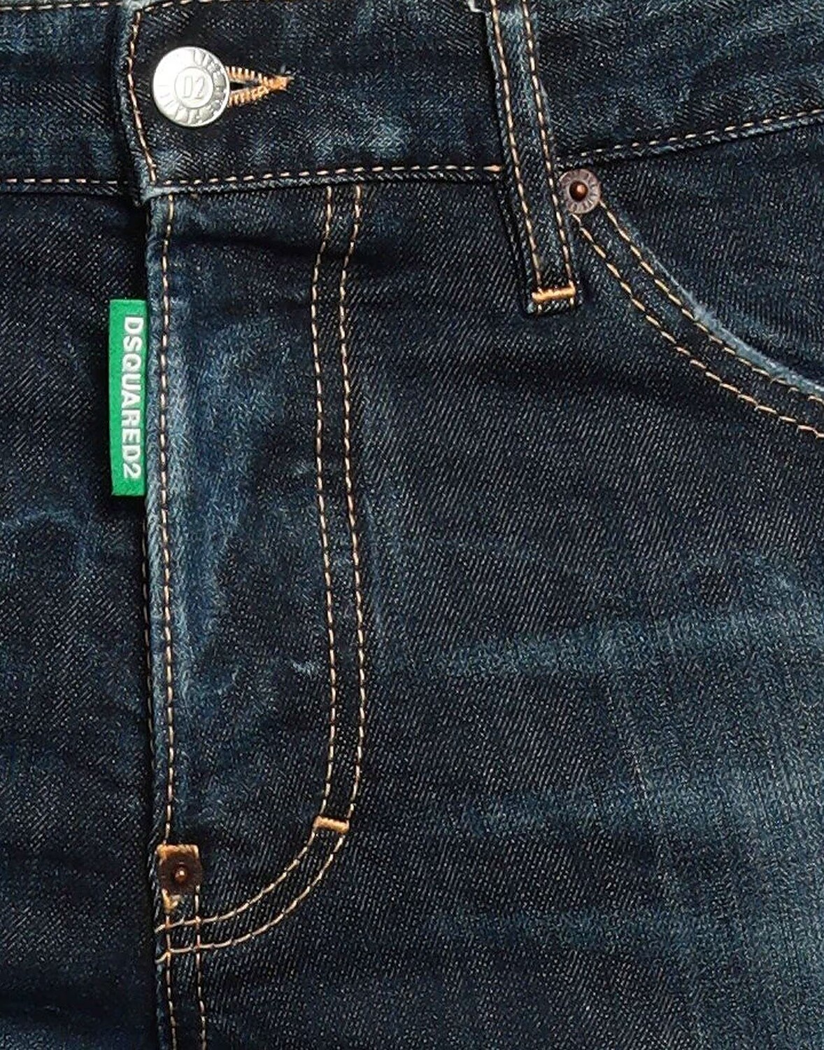 Деним, выцветший, потертый, логотип бренда, одноцветное изделие, темный цвет, завышенная талия, шлевки для ремня, зауженные брючины, узкие брюки, застежка на пуговицах, пять карманов, модель скинни