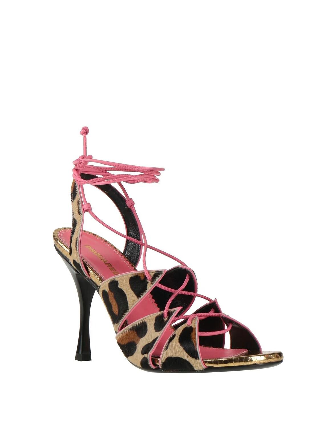 Босоножки на шнуровке, кожа, телячий волос, рубчик, без аппликаций, леопардовый принт, внутри кожа, круглый носок, каблук-катушка, кожаная подошва, содержит нетекстильные части животного происхождения