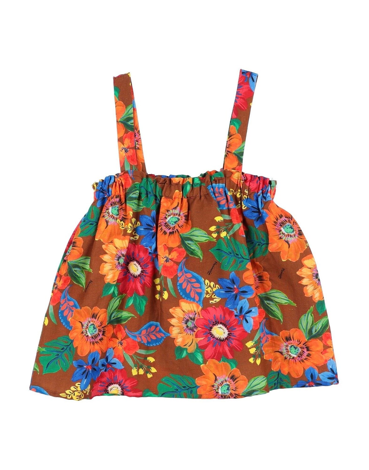 Ткань, логотип бренда, цветочный принт, квадратный вырез, без рукавов, без карманов, стирка при 30°C, не подвергать химчистке, нельзя отбеливать, нельзя сушить в стиральной машине, гладить при температуре не выше 110°C, большой размер