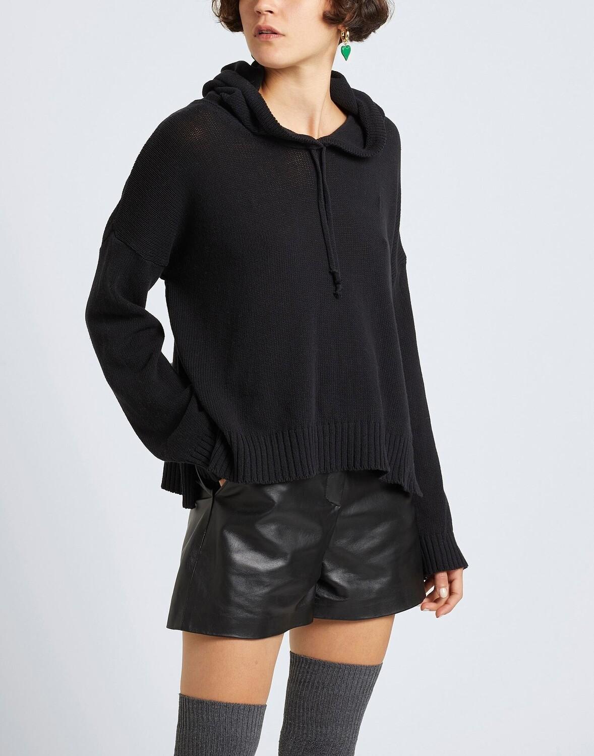 Свитер с длинными рукавами из легкого смесового хлопка, универсальный благодаря наличию удобного капюшона. Сделано в Италии и предлагается в однотонном цвете, оно выделяется боковыми разрезами внизу. Модель одета в итальянский размер S/40. Этот предмет одежды содержит цифровой идентификатор, что означает, что вы можете открыть для себя целый мир эксклюзивного контента о своем изделии; отсканируйте QR-код на этикетке по уходу за товаром.