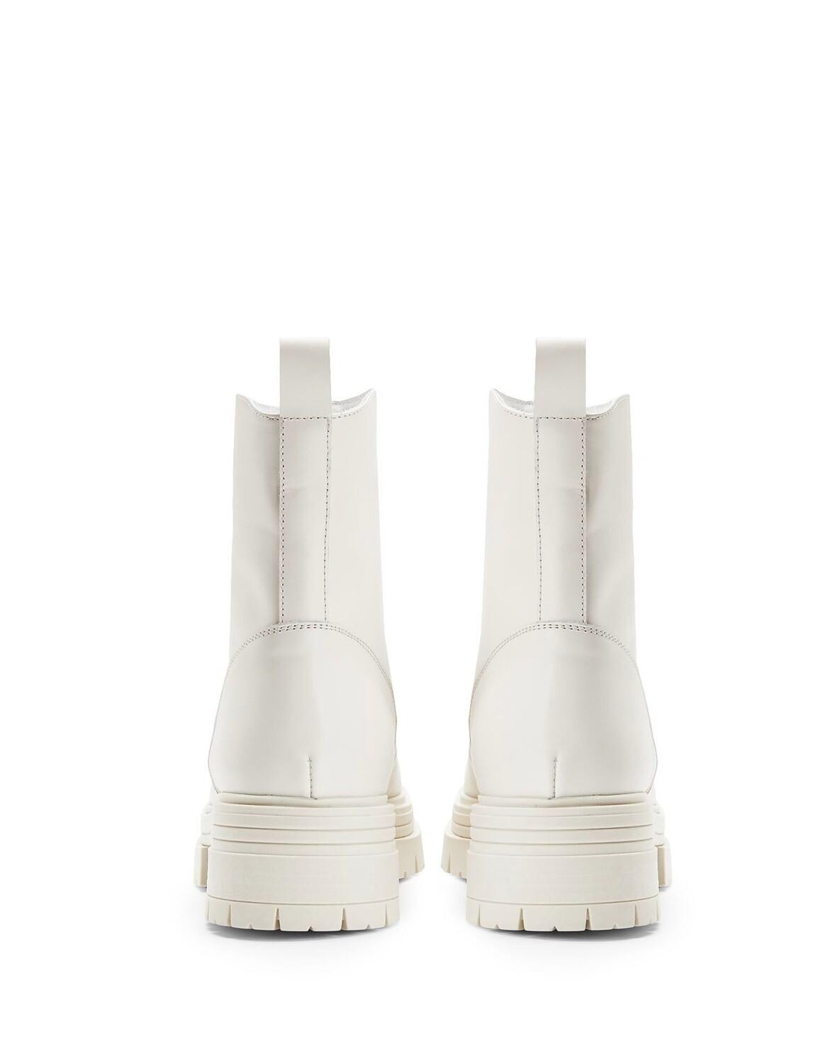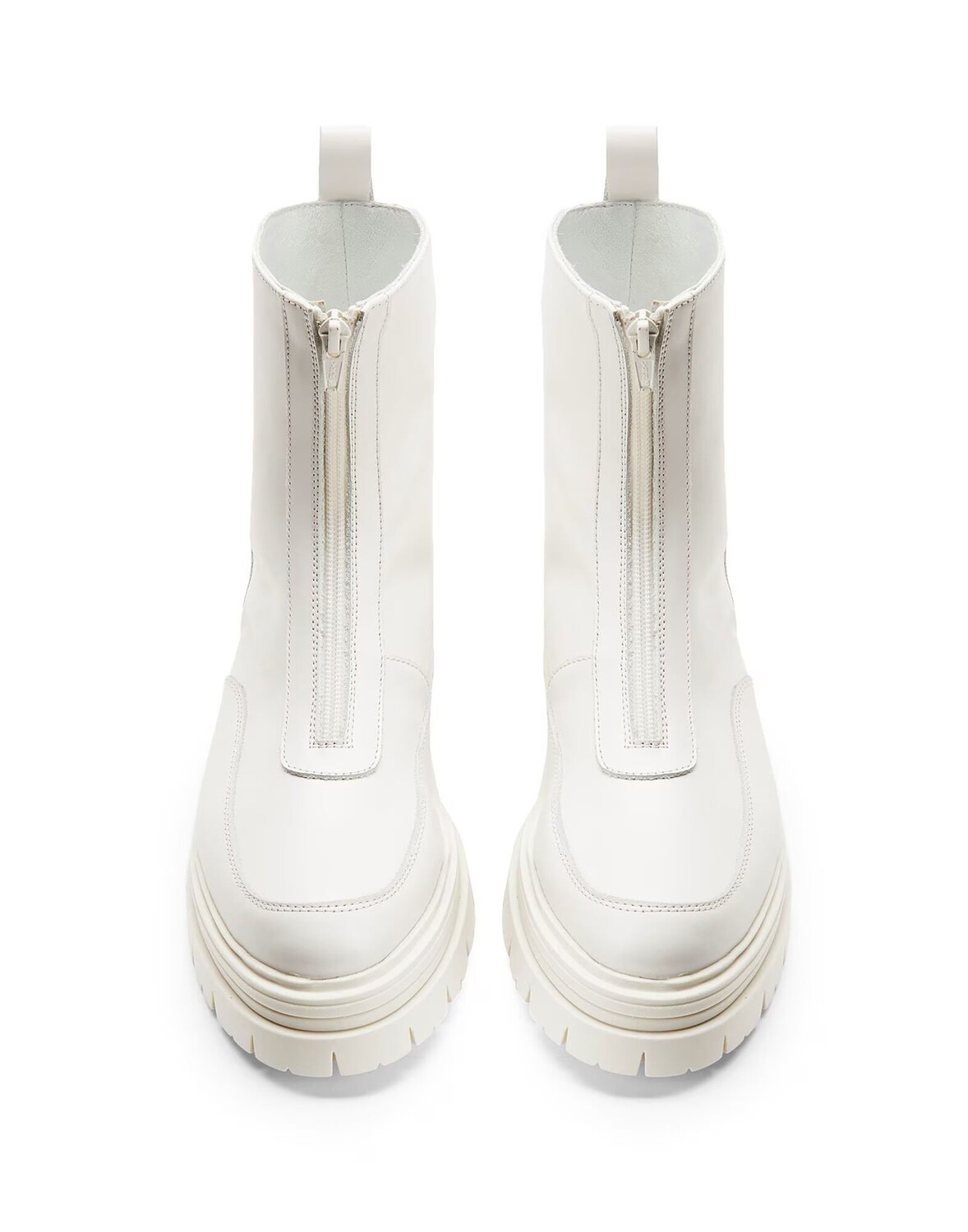 Толстая подошва с выступами придает этим ботильонам отчетливый городской стиль. Модель изготовлена ​​в Италии, выполнена из однотонной кожи и застегивается на переднюю молнию.