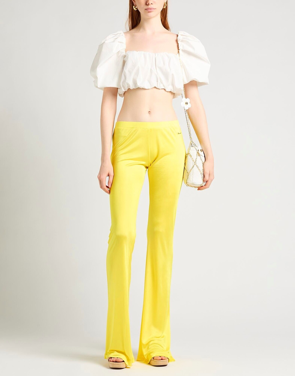 Синтетический трикотаж, логотип бренда, одноцветное изделие, средняя посадка, резинка на талии, расклешенный крой, брюки узкого кроя, без карманов, брюки