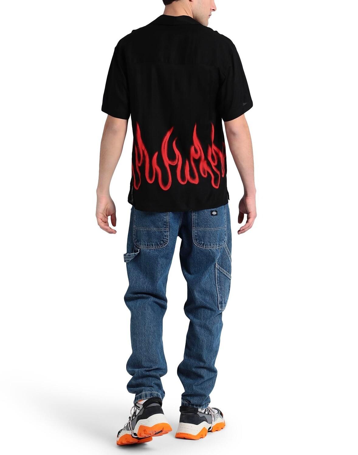 Полотняное переплетение, логотип бренда, одноцветное изделие с принтом, классический вырез горловины, короткие рукава, пуговицы, два нагрудных кармана, нижний разрез по бокам