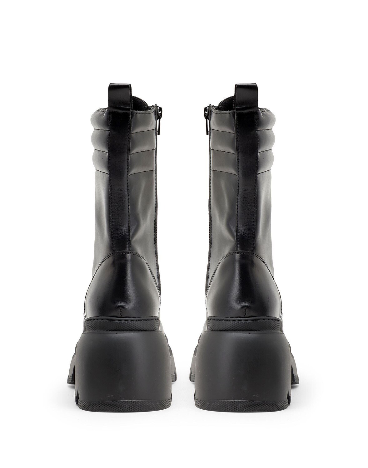 Кожа, без аппликаций, одноцветное изделие, подкладка из кожи, застежка-молния, шнуровка, скругленный носок, квадратный каблук, подошва с выступами, содержит нетекстильные части животного происхождения, массивные ботинки