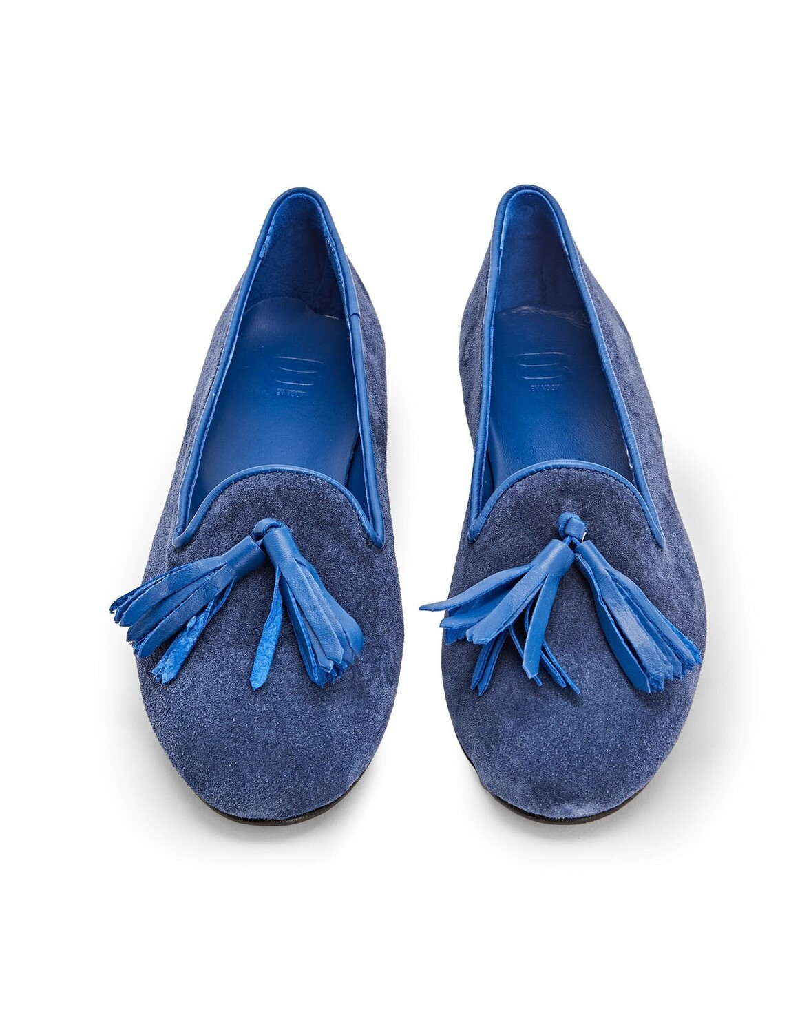 Эти слипоны итальянского производства изготовлены из простой замши. Их отличает сдержанный дизайн, закругленный носок с кисточками и плоская кожаная подошва.