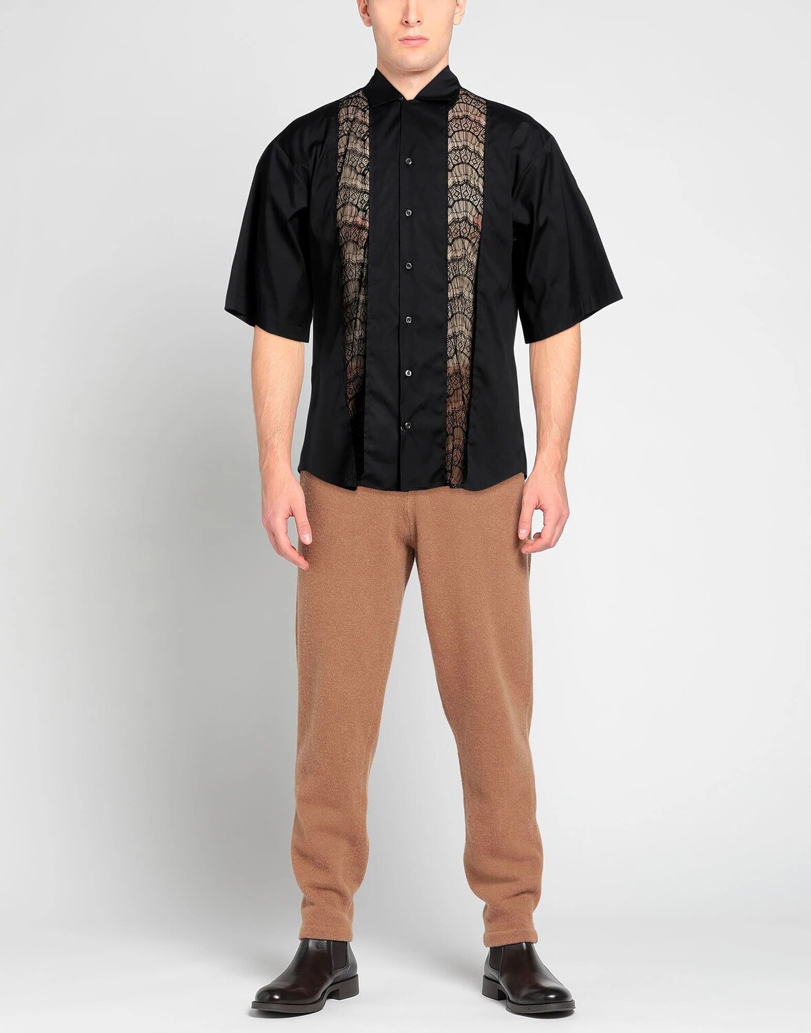 Ткань, кружево, без аппликаций, одноцветное изделие, классический воротник, короткие рукава, застежка на пуговицы, без карманов, стрейч, рубашка обычного кроя