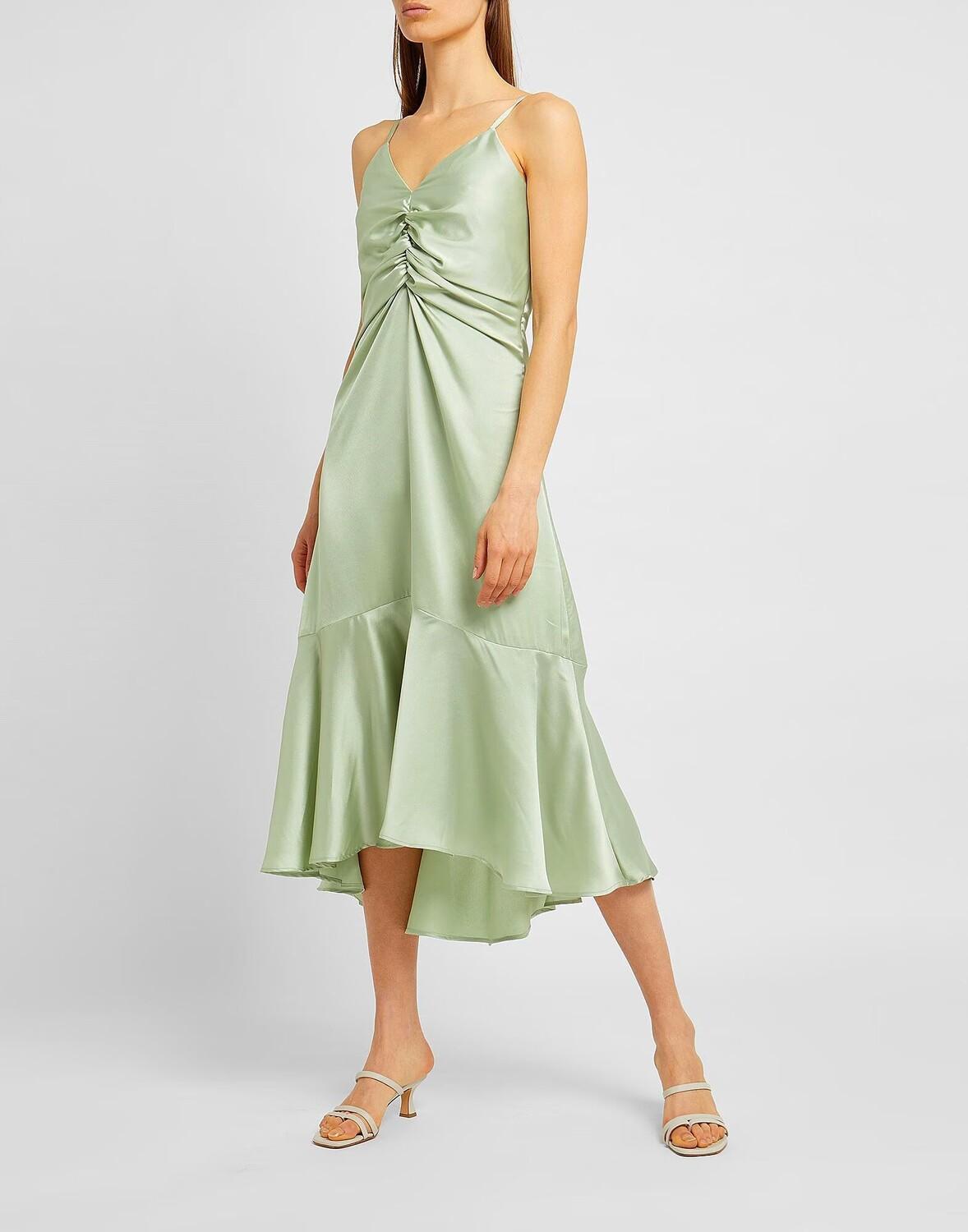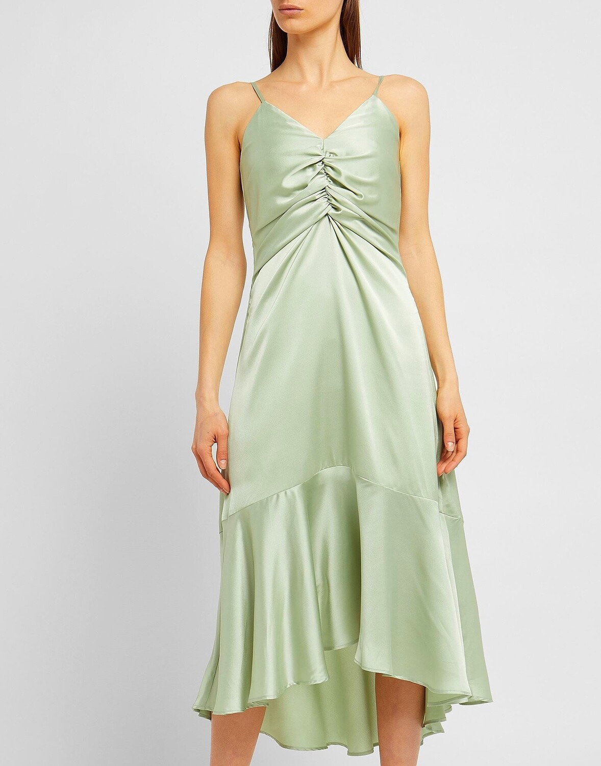Это платье миди из кади итальянского производства выделяется благодаря крою на тонких бретельках без рукавов, V-образному вырезу и застежке-молнии сзади. Драпировка и волан на подоле добавляют лифу интересности и создают плавный и изысканный силуэт. Доступно больше цветов. Рост модели 176 см (5 футов 9 дюймов), на ней итальянский размер S-40.
