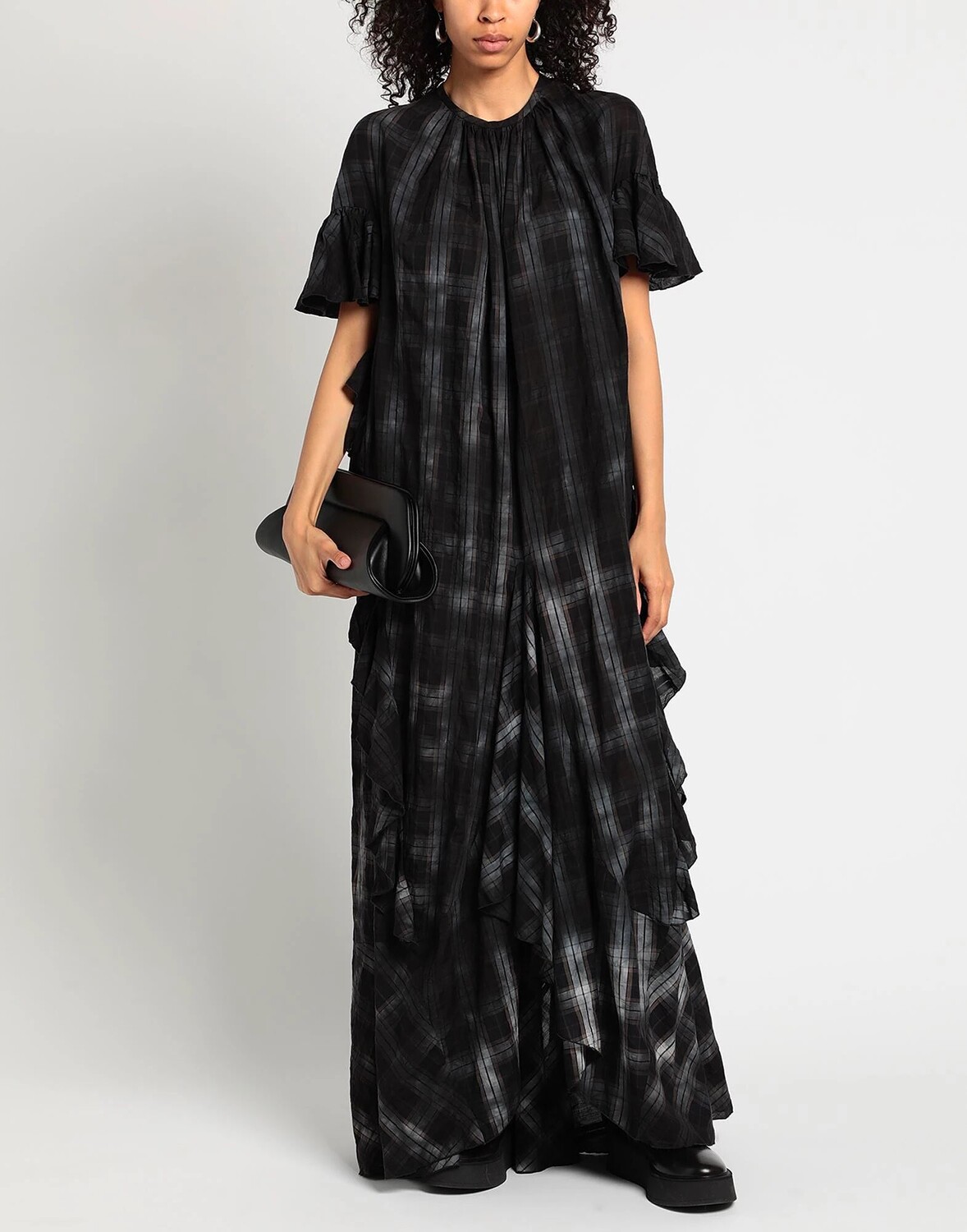 Кафтан, тканый, оборки, узор в клетку «тартан», круглый вырез, короткие рукава, без подкладки, застежка-молния, застежка на крючки, без карманов, малый тираж этой марки