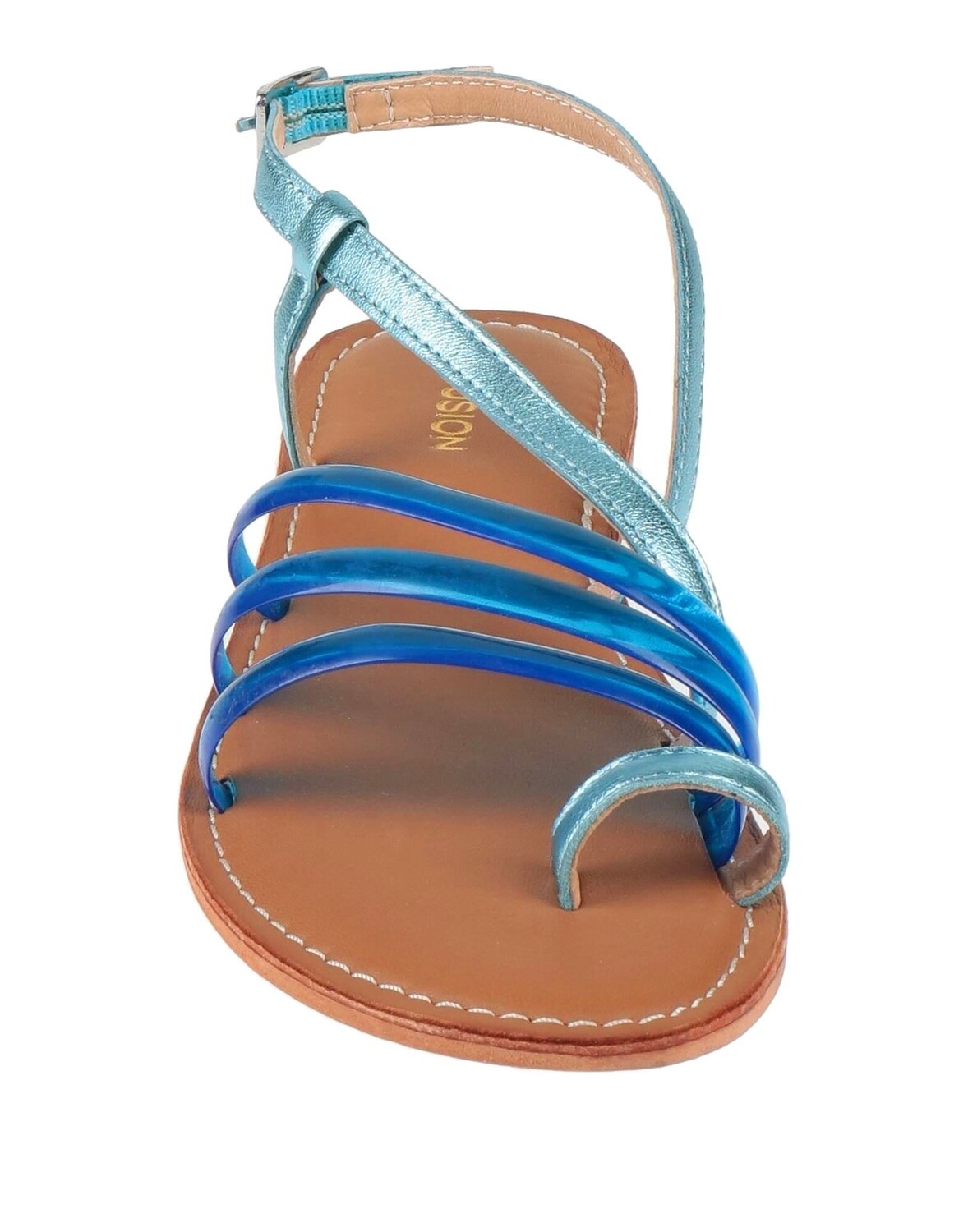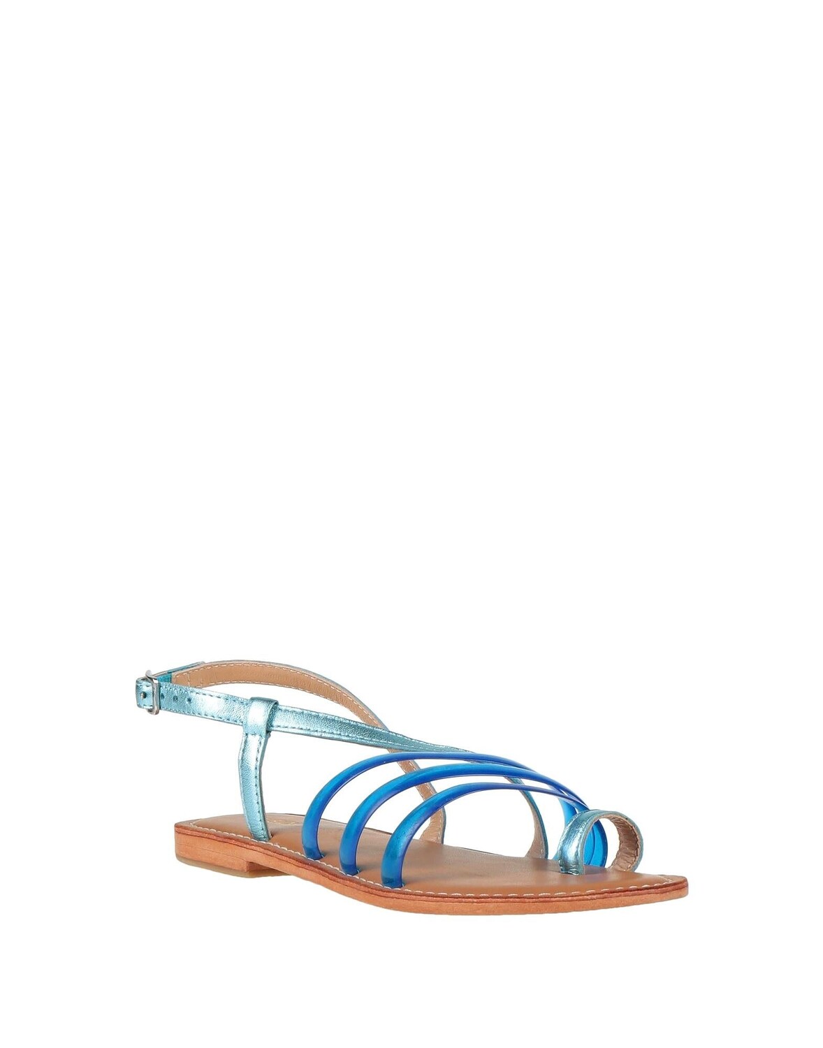 Кожа, эффект ламинирования, без аппликаций, двухцветный цвет, подкладка из кожи, ремешок с пряжкой на щиколотке, скругленный носок, без каблука, подошва кожа/резина, содержит нетекстильные части животного происхождения, босоножки с ремешком на носке