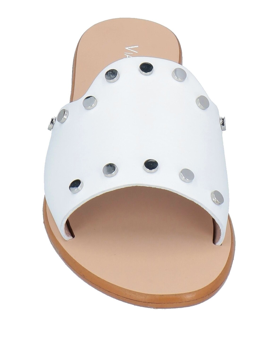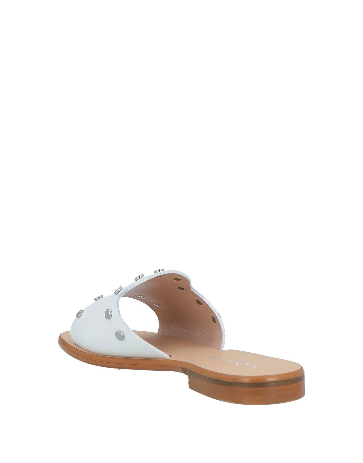 Кожа, заклепки, одноцветное изделие с аппликациями, внутренняя поверхность на подкладке, закругленный носок, плоская поверхность, резиновая подошва, содержит нетекстильные части животного происхождения, шлепанцы