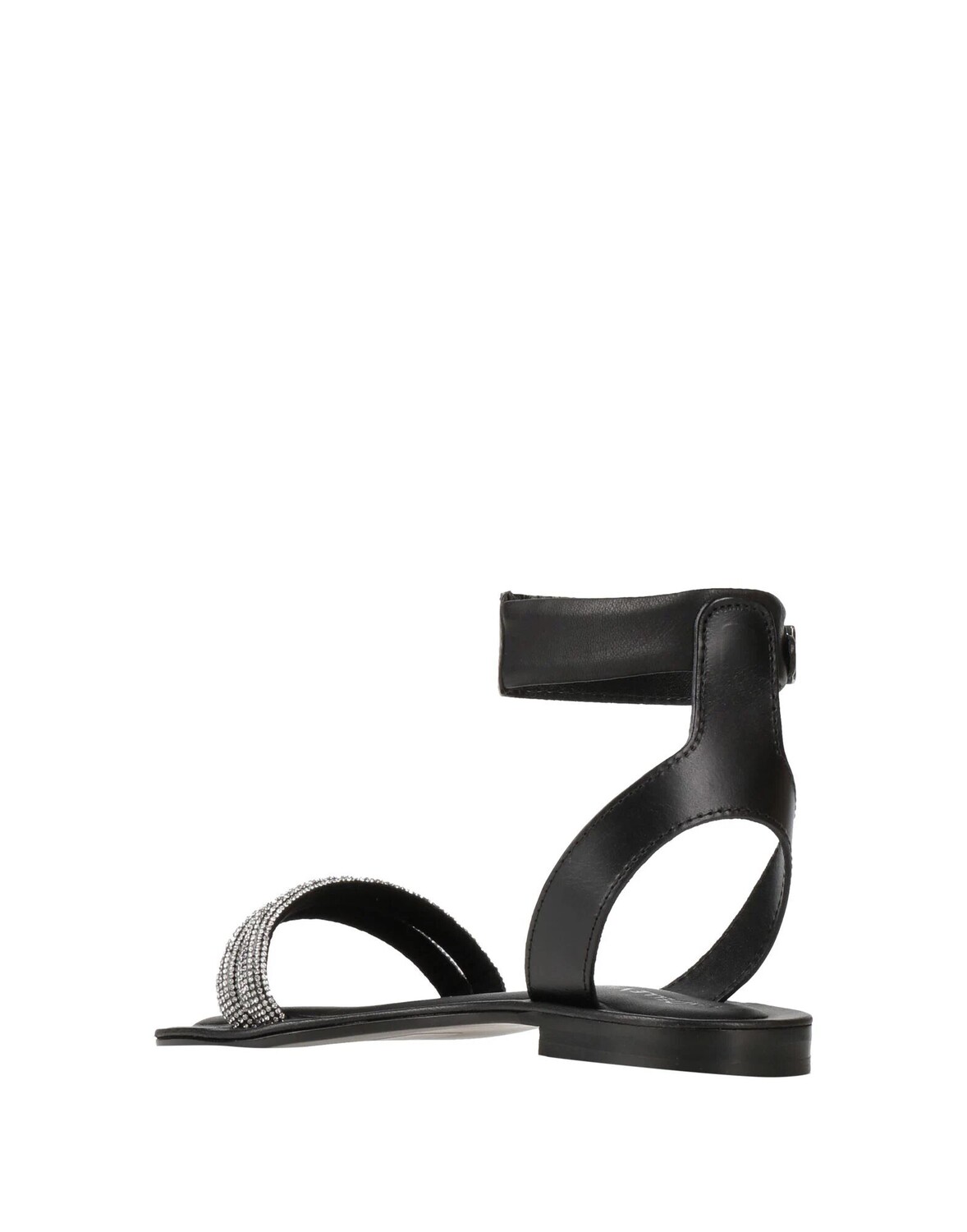 Кожа, кристаллы, одноцветное изделие с аппликациями, подкладка из кожи, ремешок на щиколотке с пряжкой, круглый носок, плоская подошва, резиновая подошва, содержит нетекстильные части животного происхождения, босоножки с ремешком на щиколотке