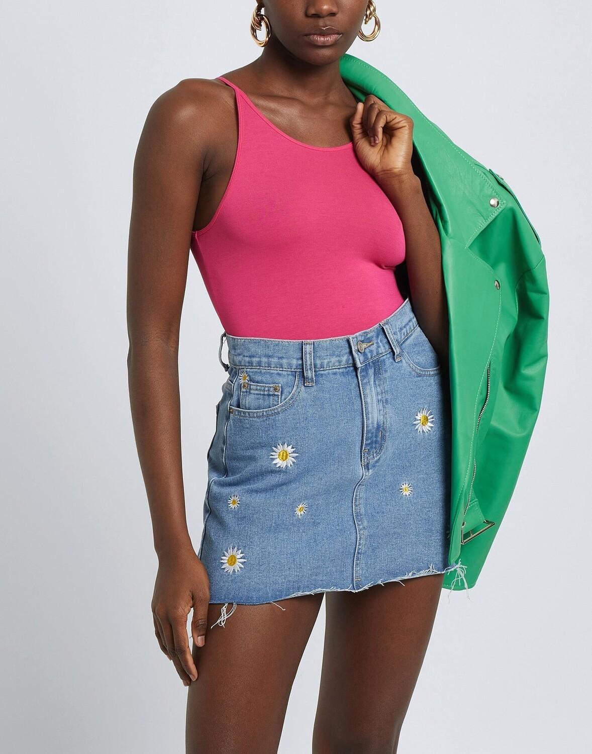 Это боди выполнено из эластичного трикотажа однотонного цвета. Модель без рукавов, с тонкими бретелями, облегающим кроем и застежкой на кнопки. На модели итальянский размер S/40. Этот предмет одежды содержит цифровой идентификатор, что означает, что вы можете открыть для себя целый мир эксклюзивного контента о своем изделии; отсканируйте QR-код на этикетке по уходу за товаром.