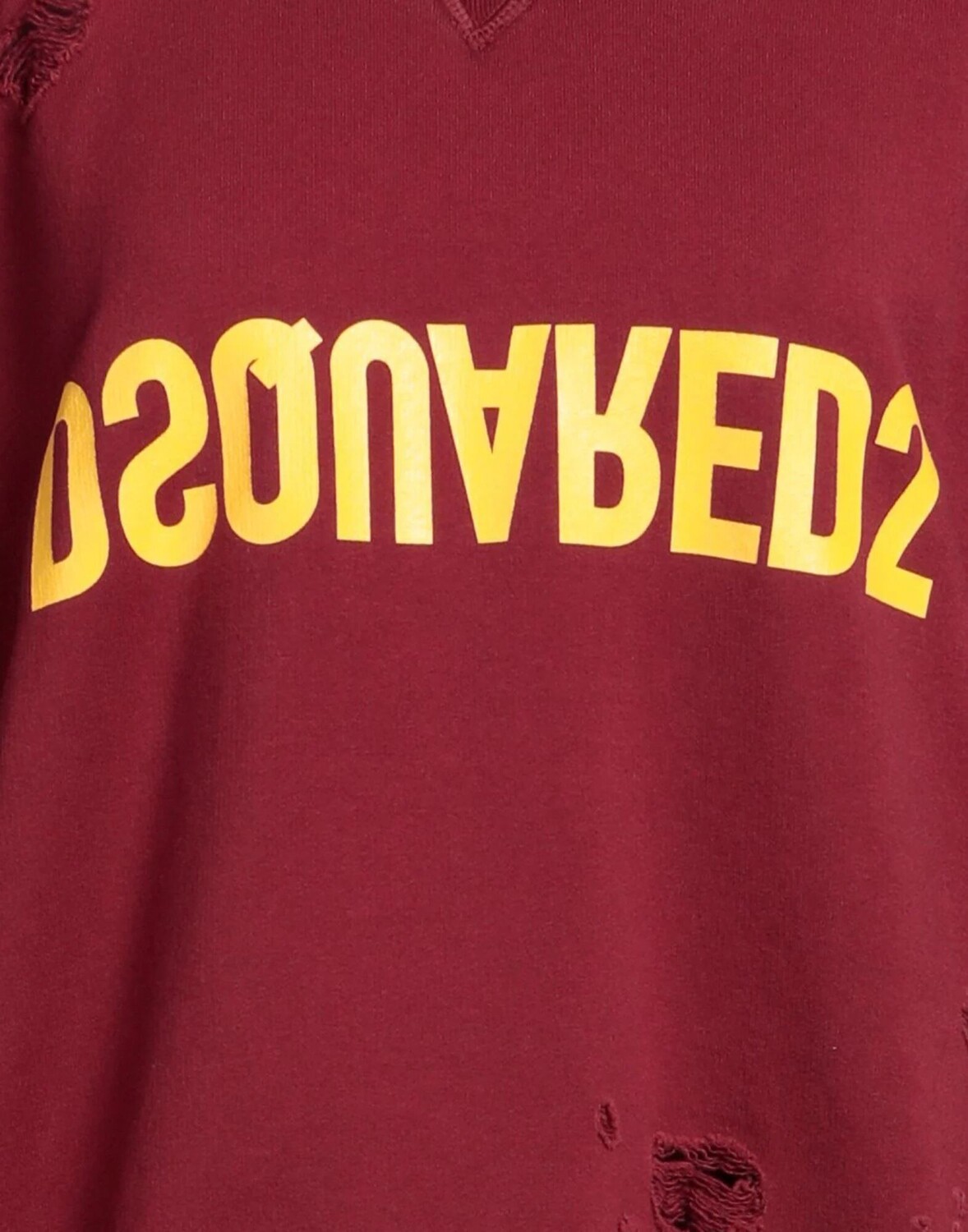 Французская махровая ткань, потертость, логотип бренда, одноцветное изделие, круглый вырез, длинные рукава, без карманов