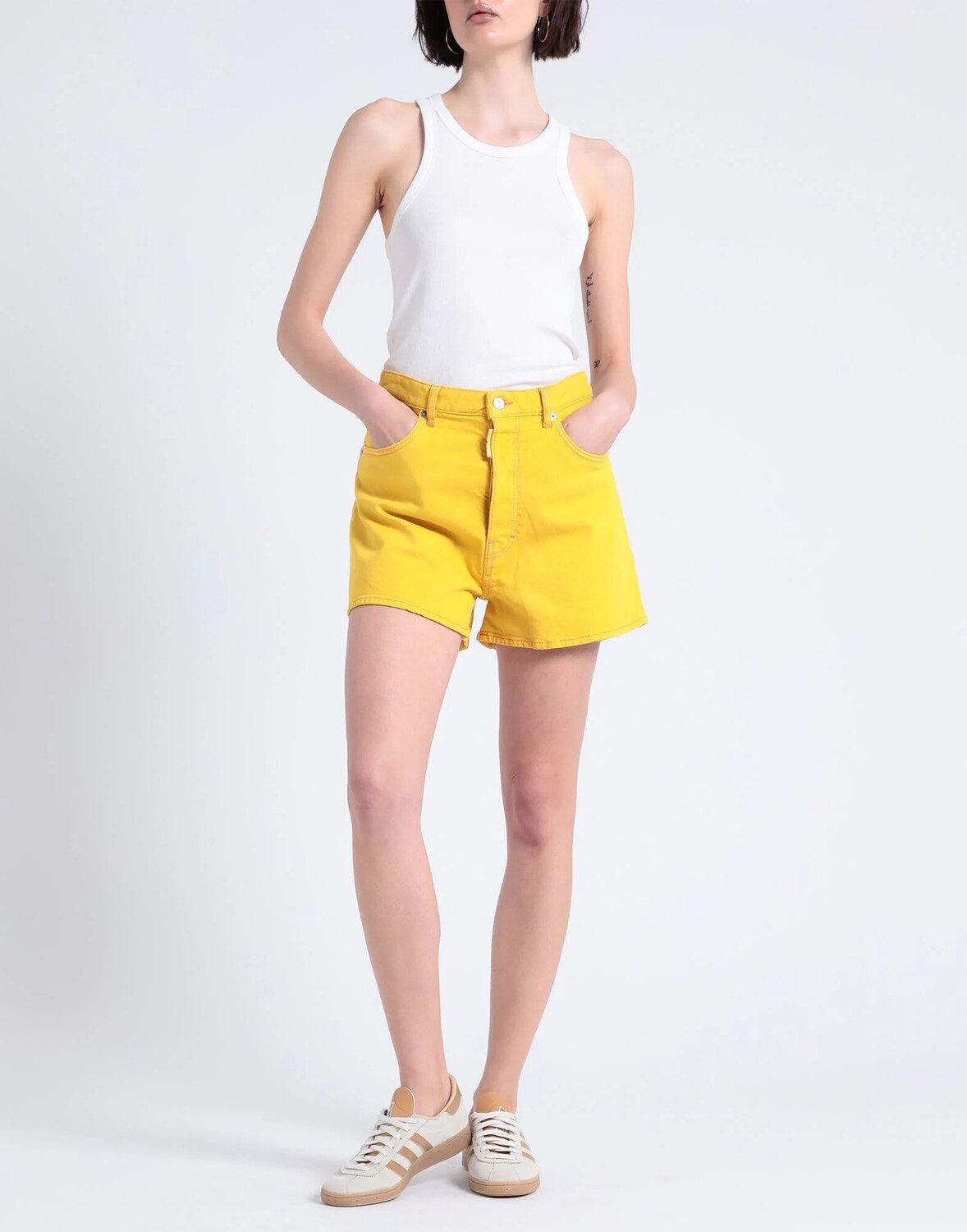 Джинсовая ткань, логотип бренда, одноцветное изделие, цветная стирка, завышенная талия, шлевки для ремня, стандартный крой, застежка на пуговицы, множество карманов, стрейч, шорты