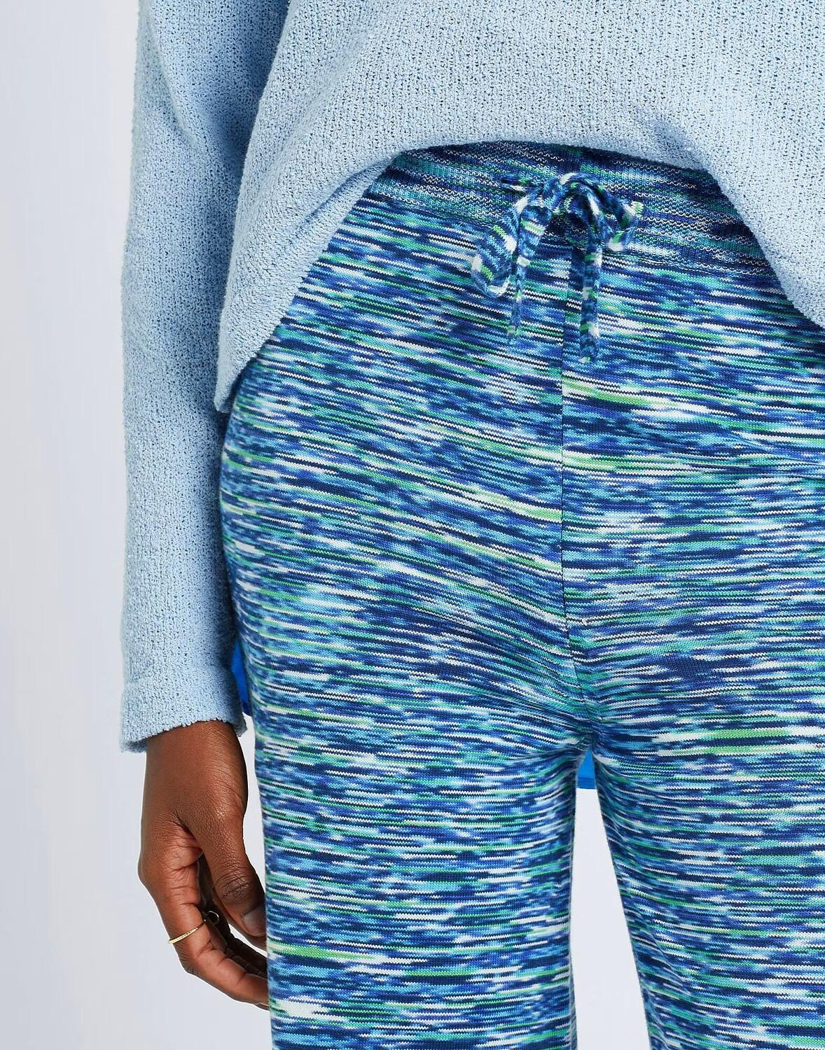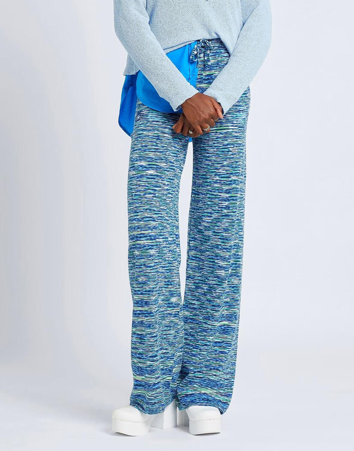 Трикотажные брюки из хлопка и переработанного хлопка с завышенной талией, украшенные разноцветным меланжевым узором. Сделанные в Италии и представленные в широком крое, они имеют свободный крой и дополнены кулиской на талии с таким же узором. На модели итальянский размер S/40. Этот предмет одежды содержит цифровой идентификатор, что означает, что вы можете открыть для себя целый мир эксклюзивного контента о своем изделии; отсканируйте QR-код на этикетке по уходу за товаром.