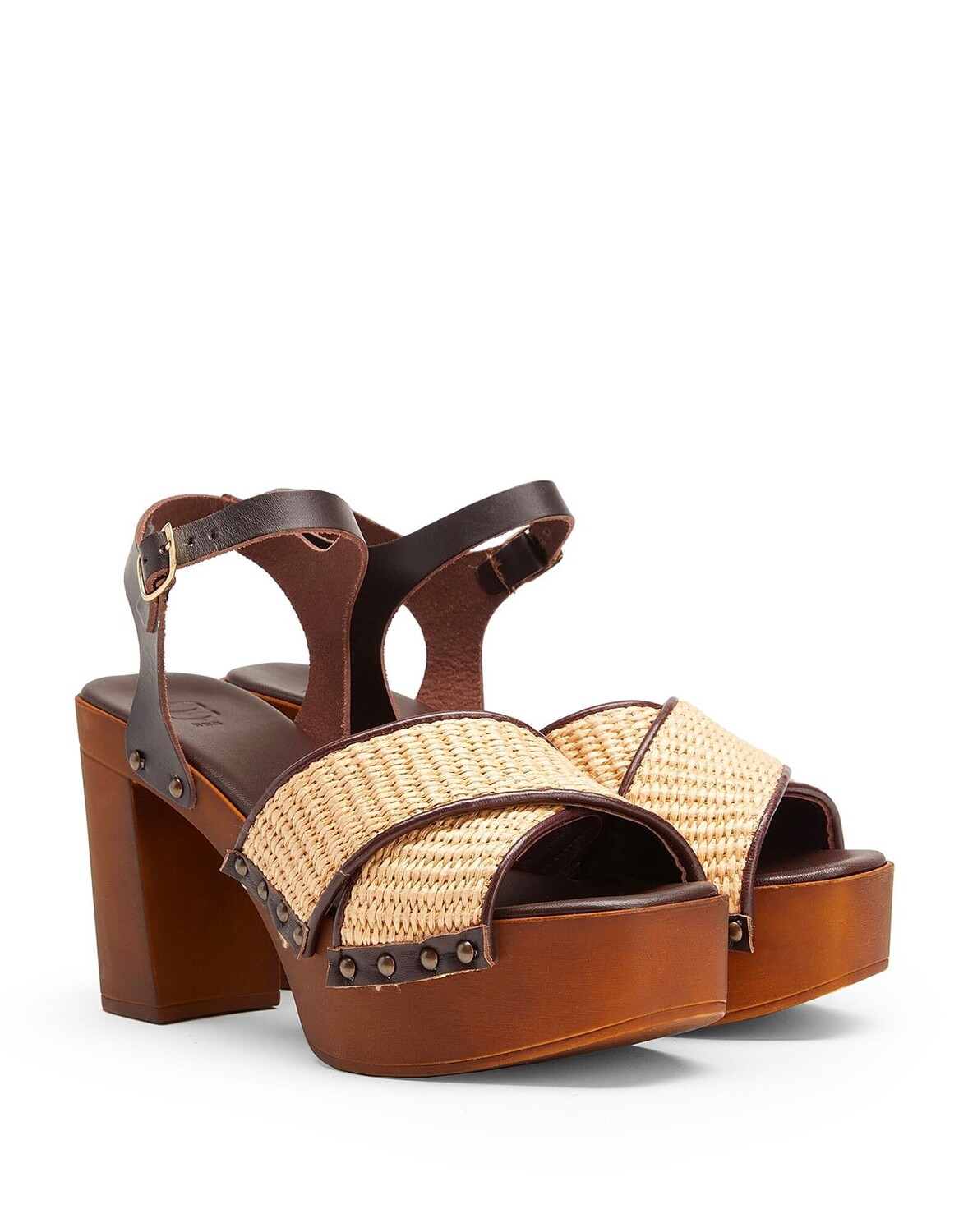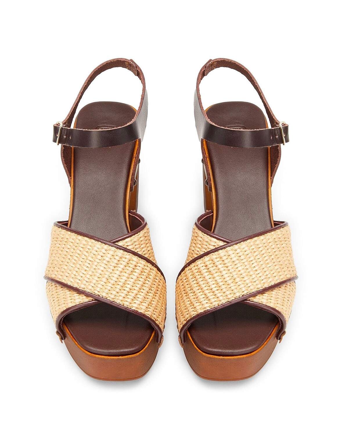 Эти босоножки из рафии с перекрестным силуэтом спереди, платформой спереди и квадратным каблуком, сделаны в Италии. Выполненные в однотонном цвете, они дополнены резиновой подошвой и регулируемым ремешком на щиколотке с пряжкой.