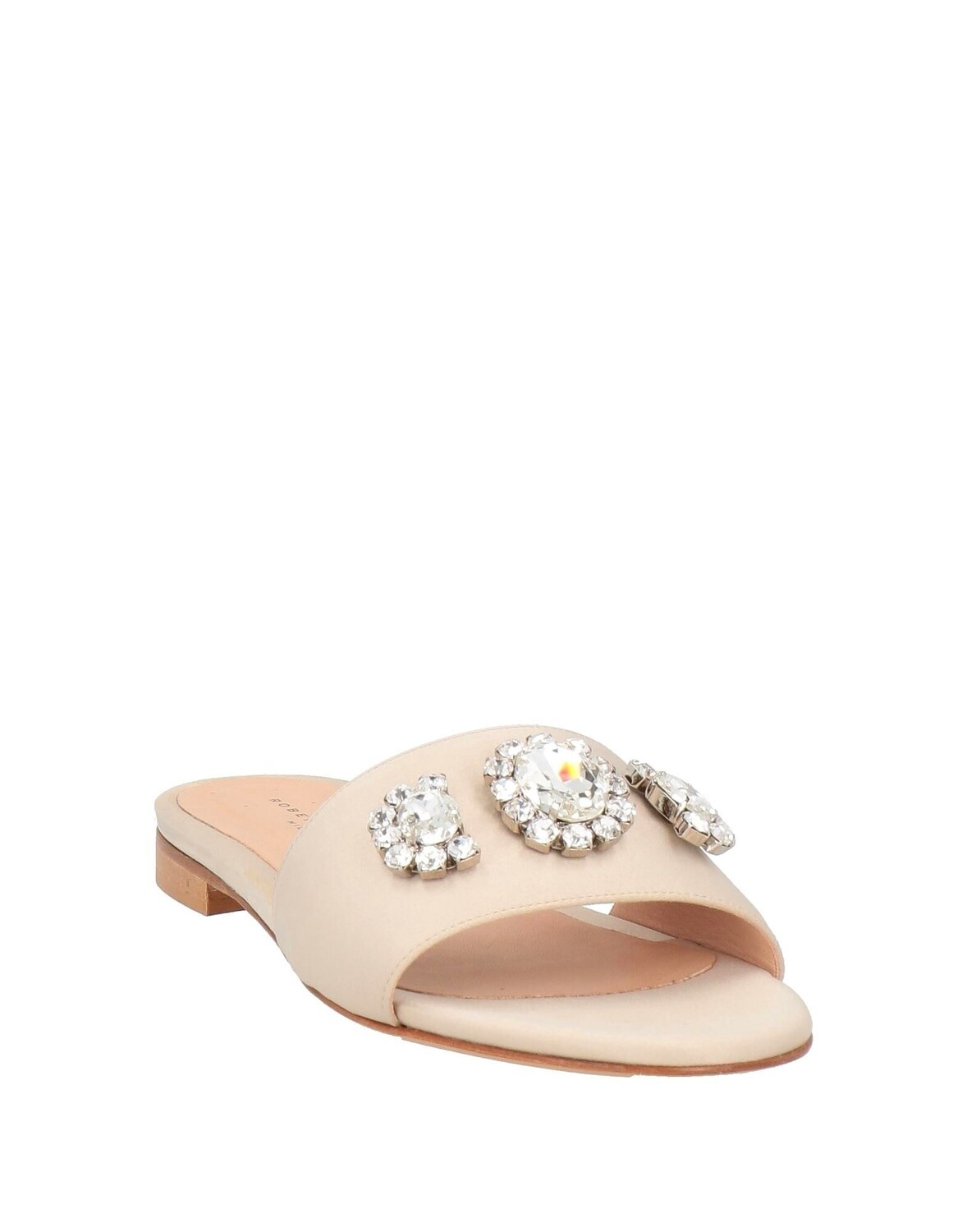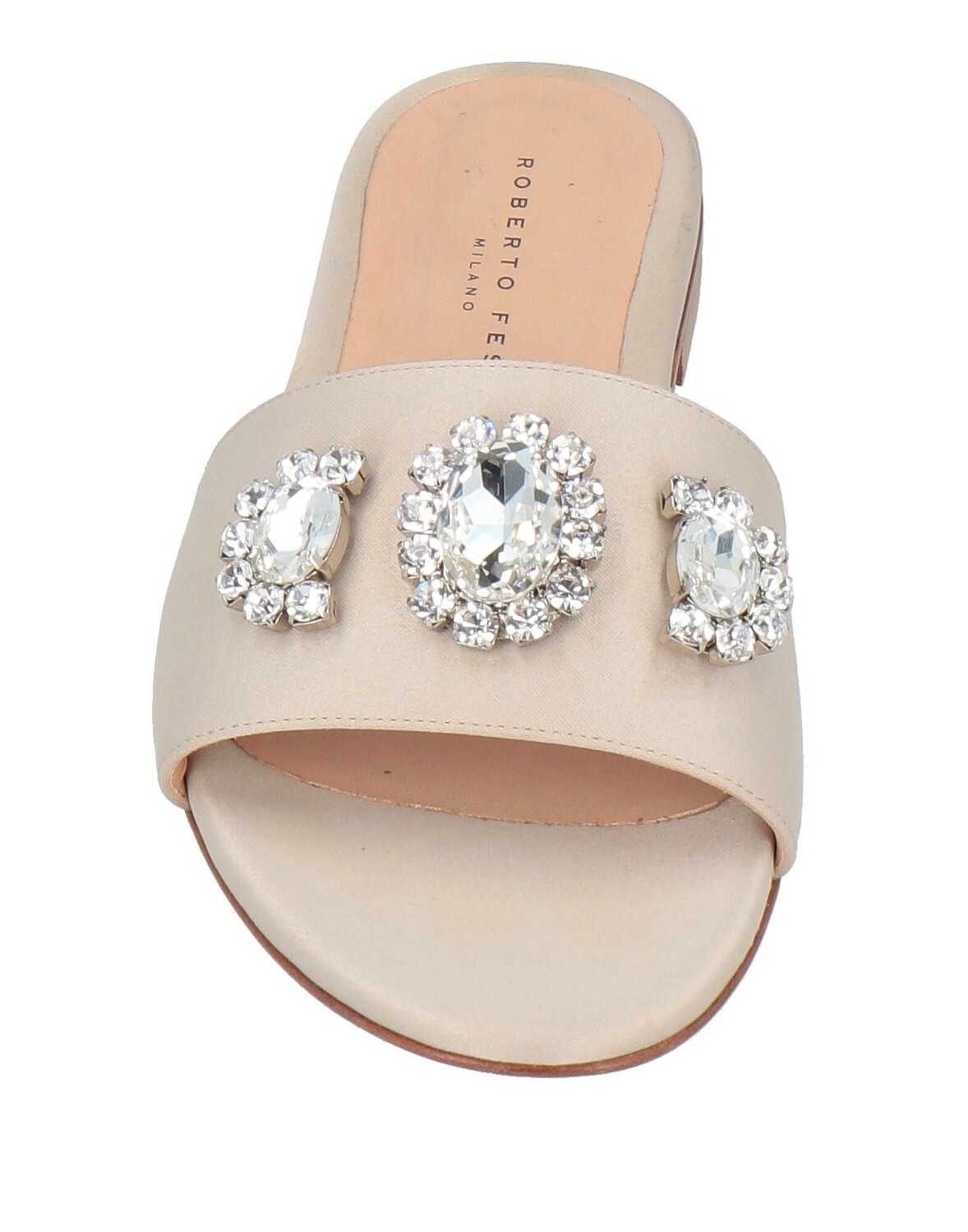 Шлепанцы, атласные, однотонные с аппликациями, кристаллами, кожаная подкладка, закругленный носок, без каблука, кожаная подошва, содержит нетекстильные части животного происхождения, большого размера