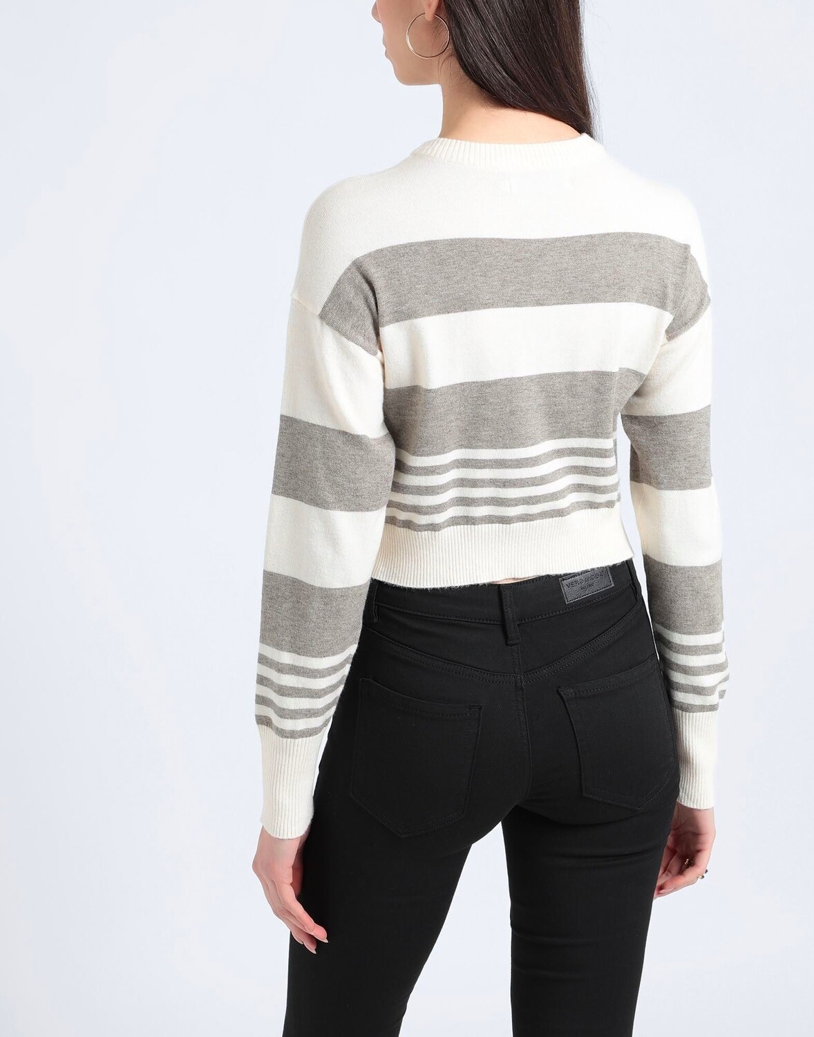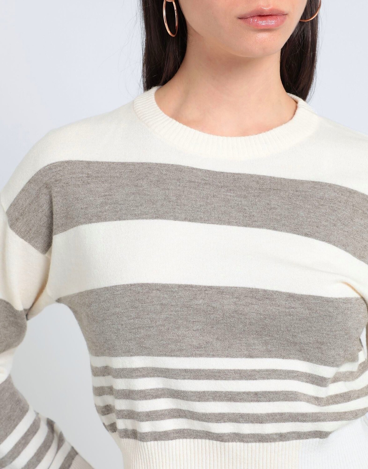 Трикотаж, легкая вязка, без аппликаций, в полоску, круглый вырез, длинные рукава