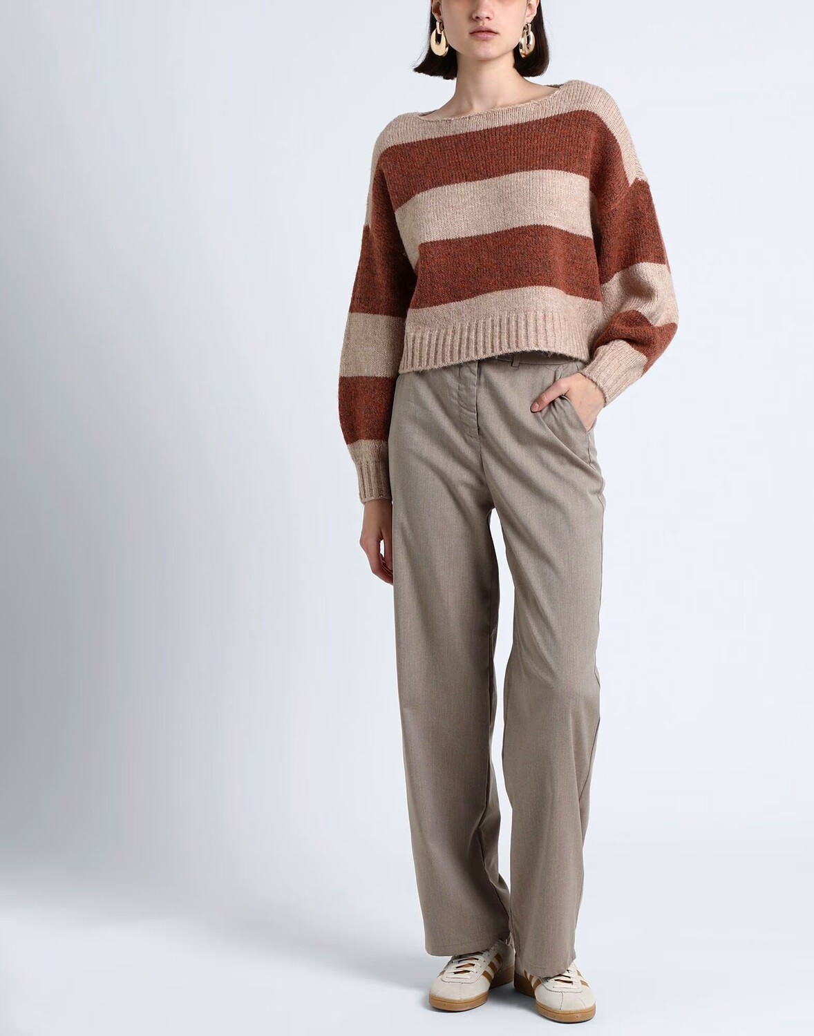 Трикотаж, меланж, трикотаж средней плотности, без аппликаций, в полоску, широкий вырез горловины, длинные рукава, без карманов