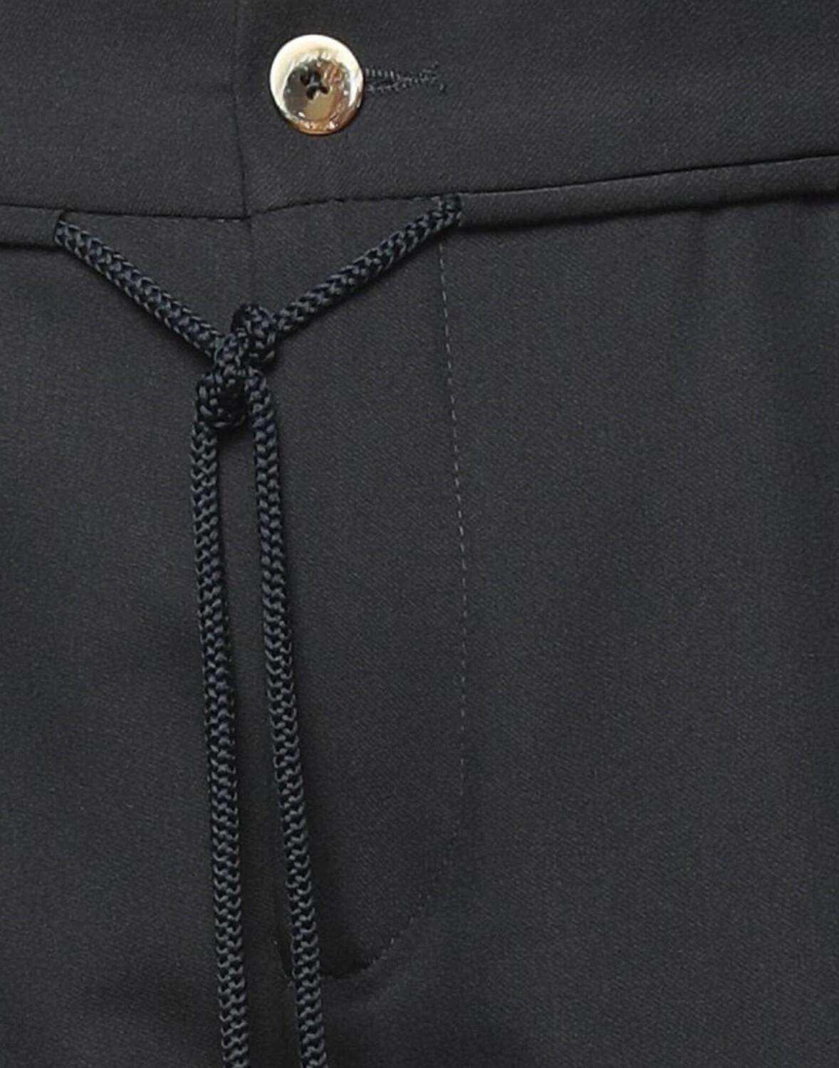 Полотняное переплетение, без аппликаций, одноцветное изделие, средняя посадка, талия на резинке, зауженные брючины, узкие брюки, застежка на кулиске, множество карманов, манжеты по краю