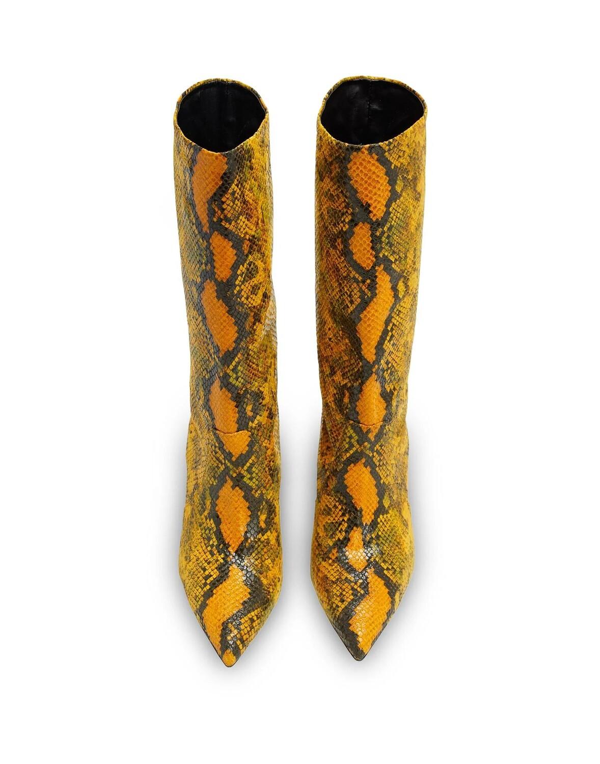Принт под змеиную кожу, без аппликаций, разноцветный рисунок, подкладка из кожи, узкий носок, каблук-шип, резиновая подошва, содержит нетекстильные части животного происхождения, ботинки