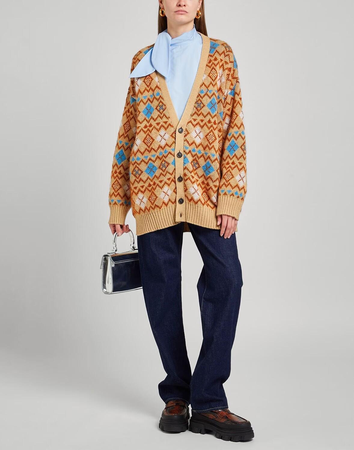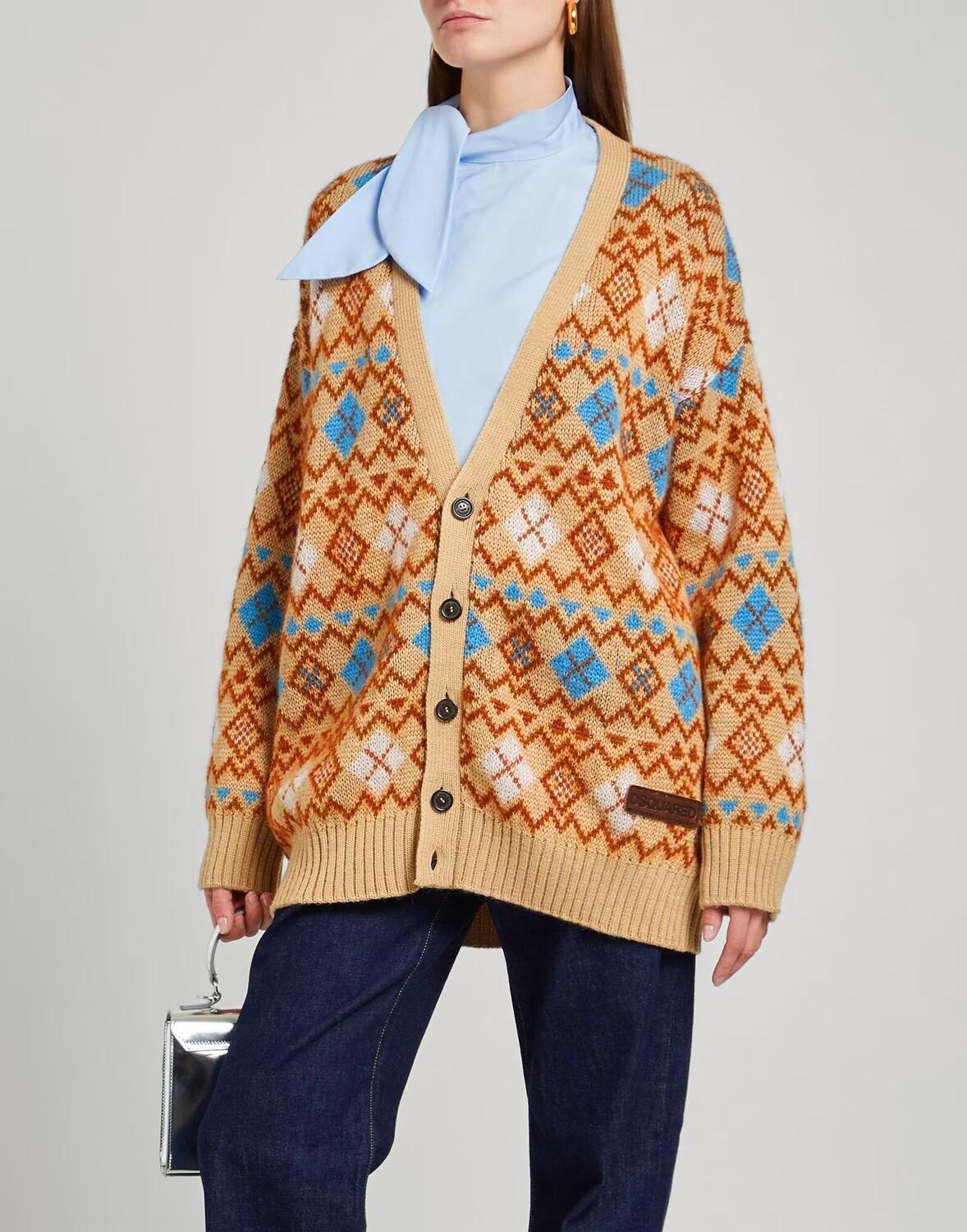 Трикотаж, легкая вязка, логотип бренда, разноцветное, длинные рукава, застежка на пуговицах, без карманов, химчистка, нельзя отбеливать, нельзя сушить в стиральной машине