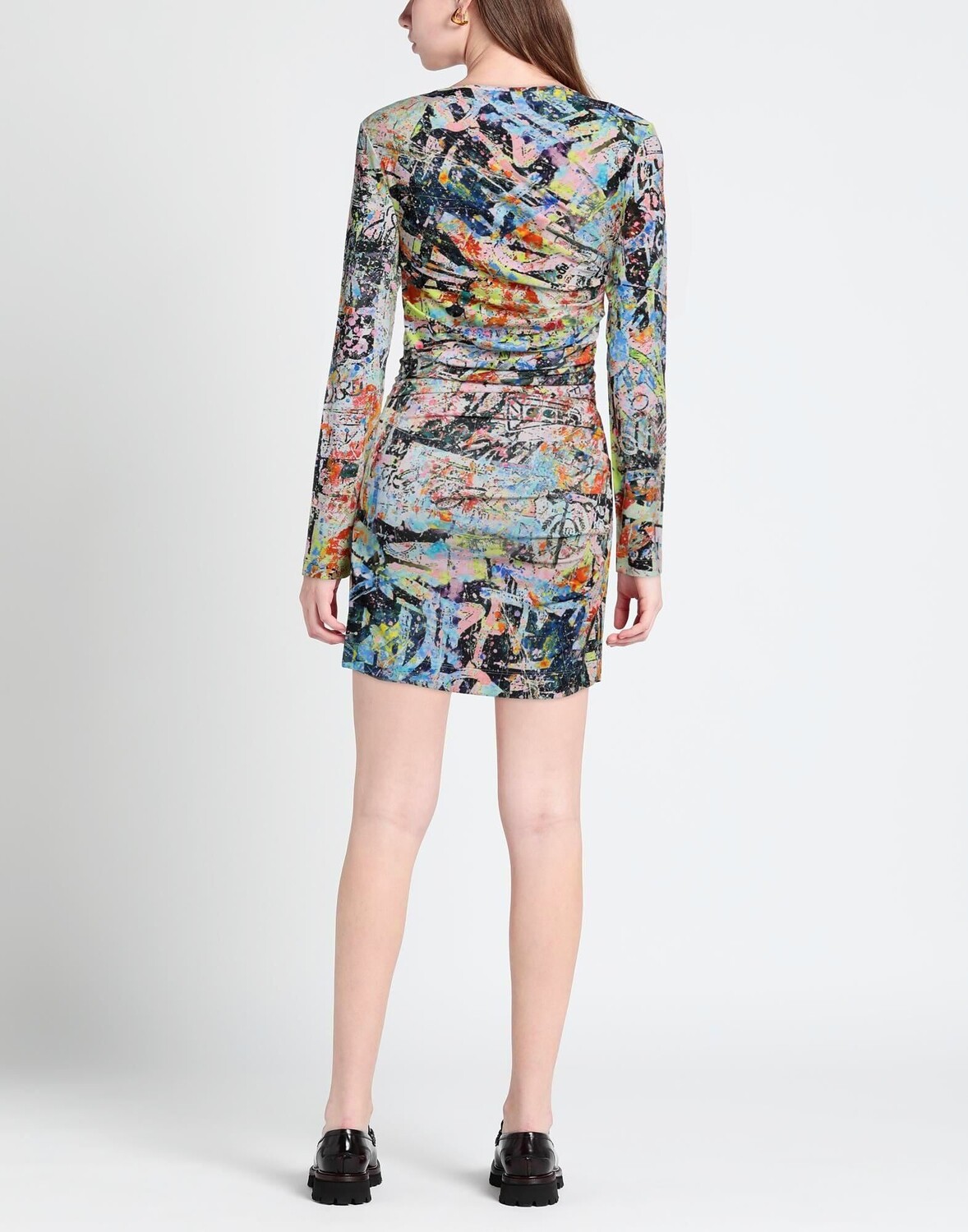 Джерси, драпированная отделка, разноцветный узор, круглый воротник, длинные рукава, без подкладки, без карманов, стрейч, фасон трапеция, маленький размер