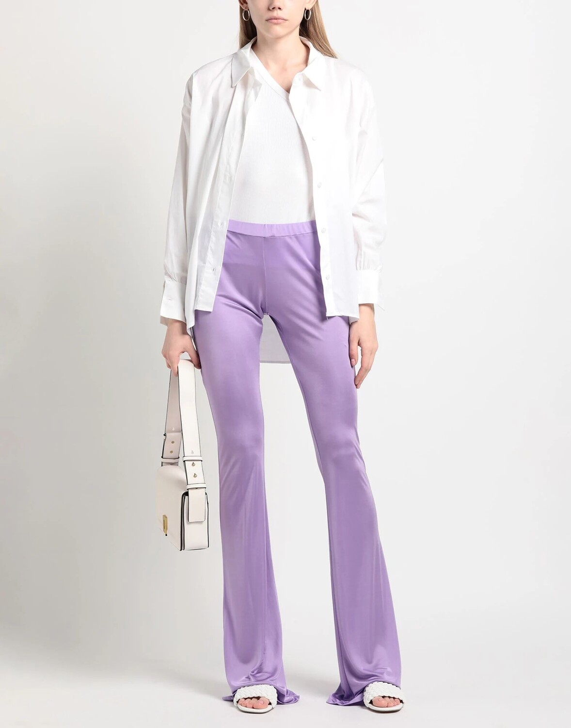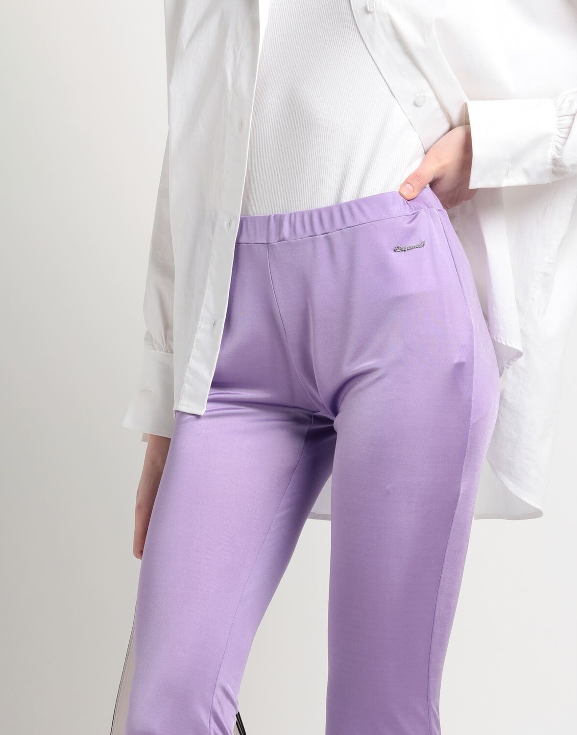 Синтетический трикотаж, логотип бренда, одноцветное изделие, средняя посадка, резинка на талии, расклешенный крой, брюки узкого кроя, без карманов, брюки