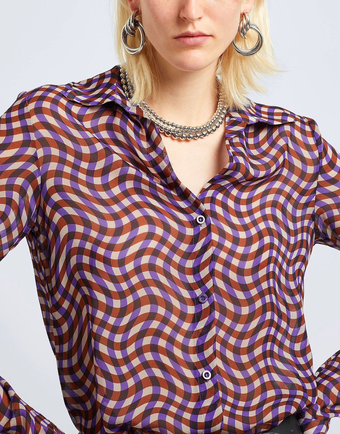Эта рубашка 8 by YOOX, сделанная в Италии, украшена абстрактным принтом в мелкую клетку. Воздушный креп прекрасно сочетается с кожей. Дополните свой яркий ансамбль кожаными брюками в тон. На модели итальянский размер S/40. Этот предмет одежды содержит цифровой идентификатор, что означает, что вы можете открыть для себя целый мир эксклюзивного контента о своем изделии; отсканируйте QR-код на этикетке по уходу за товаром.