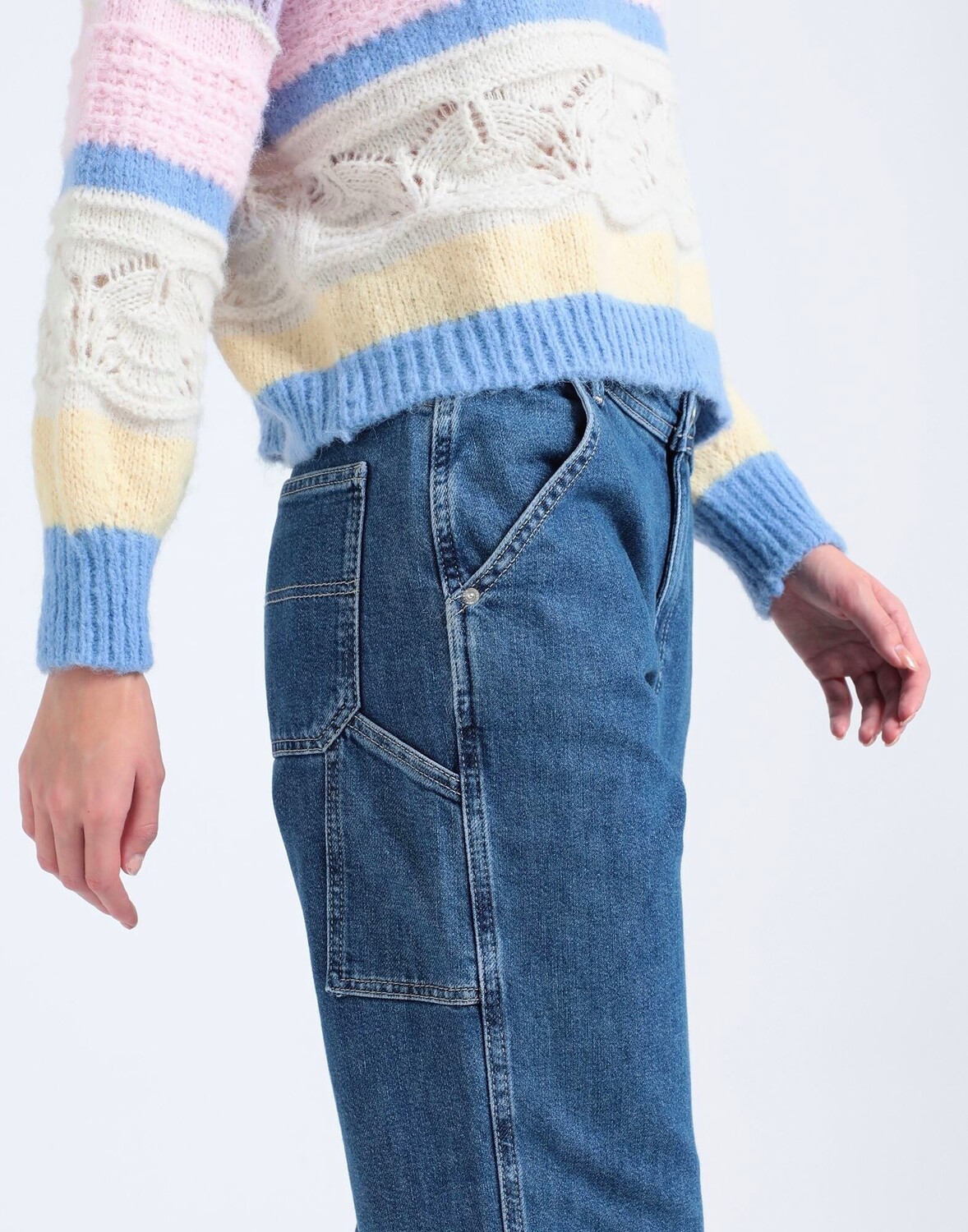 Джинсовая ткань, без аппликаций, однотонный цвет, средняя стирка, высокая талия, прямые брючины, стандартный крой, 1 пуговица, застежка-молния, множество карманов, этот бренд является участником инициативы по улучшению хлопка (bci), поддерживающей более устойчивое хлопководство., прямой крой модель