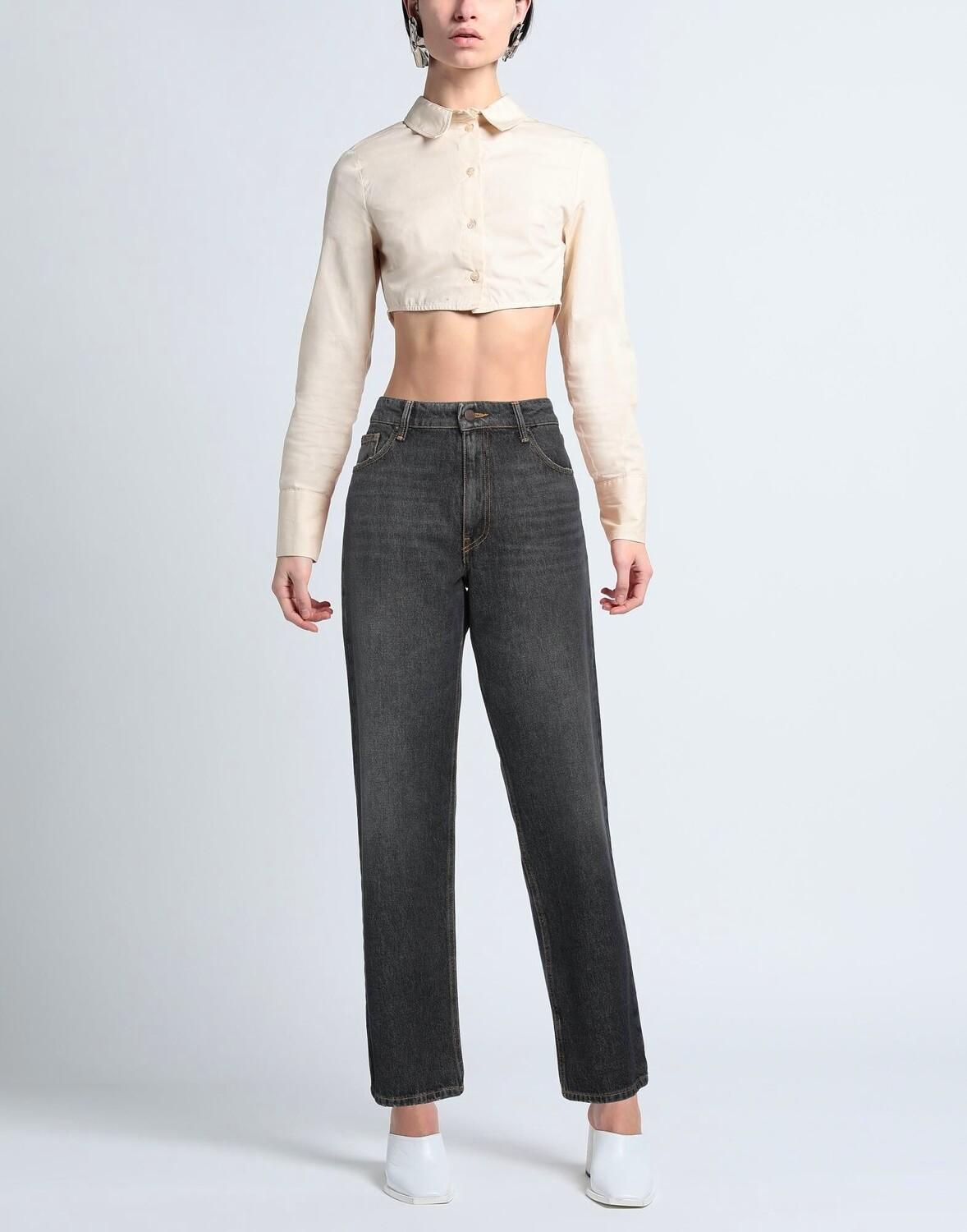 Джинсовая ткань, кожаная отделка, логотип бренда, одноцветное изделие, цветная стирка, высокая талия, стандартный крой, 1 пуговица, застежка-молния, множество карманов, машинная стирка или химчистка, не отбеливать, сушить в стиральной машине, содержит нетекстильные части животного происхождения, прямые джинсы