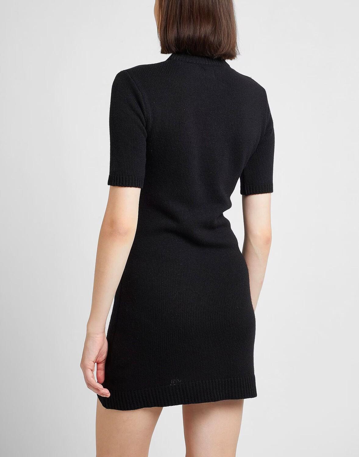 Трикотажное, в рубчик, средней плотности, без аппликаций, одноцветное изделие, круглый вырез, короткие рукава, без подкладки, облегающее платье