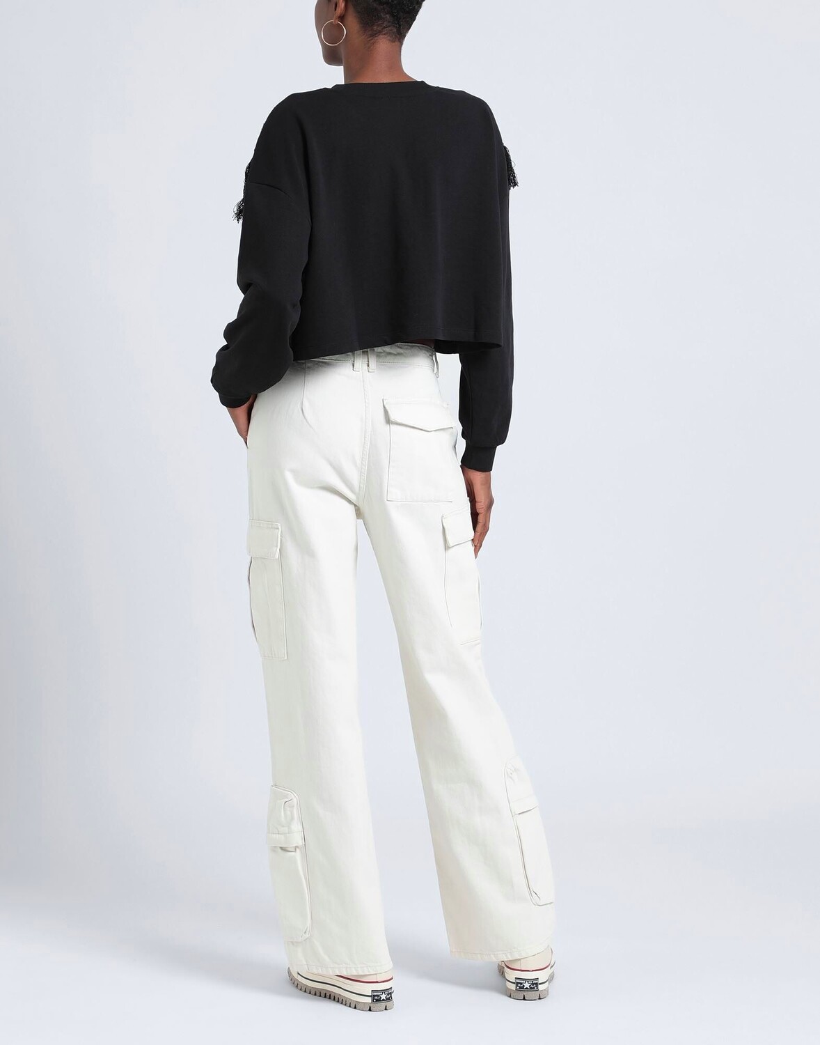 Джинсовая ткань, без аппликаций, одноцветное изделие, цветная стирка, завышенная талия, шлевки для ремня, стандартный крой, 1 пуговица, застежка-молния, множество карманов, машинная стирка, не отбеливать, сушить в стиральной машине, джинсы карго