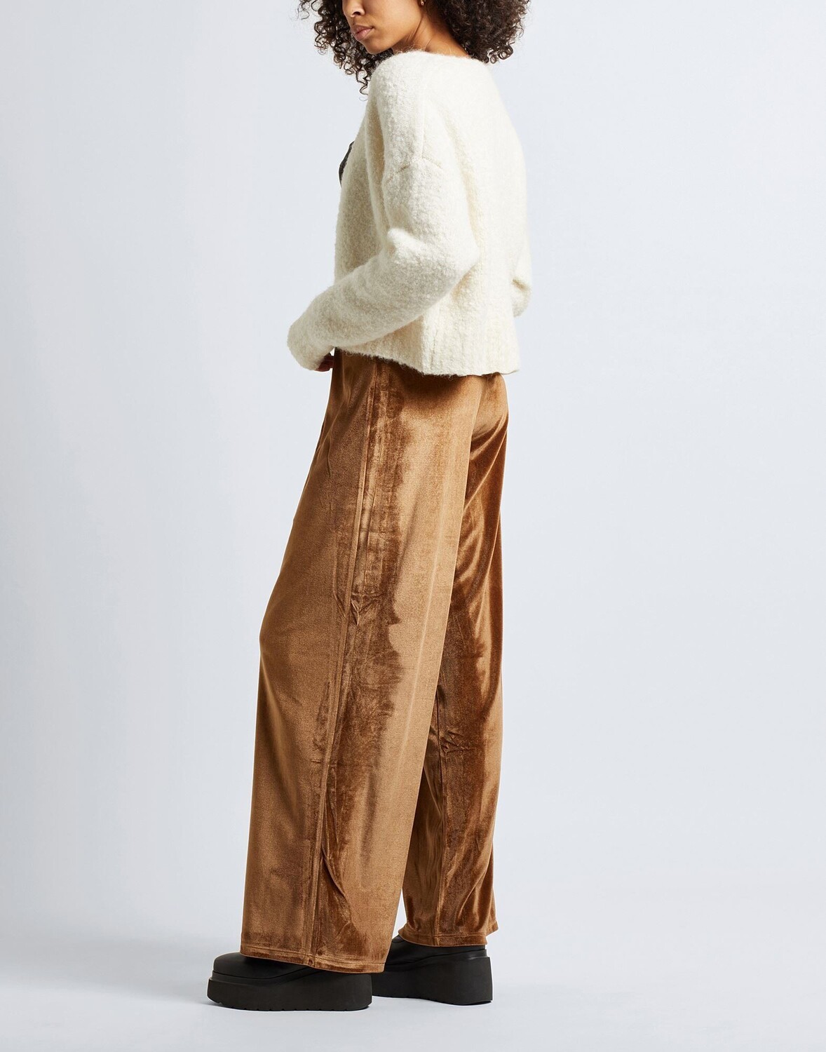 Эти мягкие брюки из синели имеют эластичную талию. Сделанные в Италии, они предлагаются в однотонном исполнении и имеют широкий крой. На модели итальянский размер S/40.