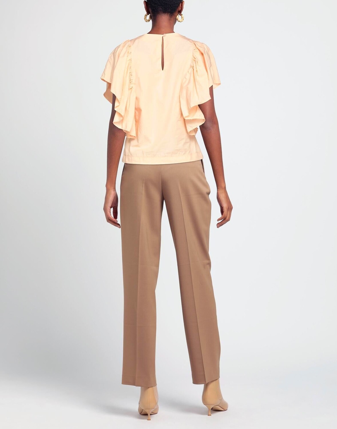 Полотняное переплетение, оборки, одноцветное изделие, круглый вырез, короткие рукава, 1 пуговица, без карманов
