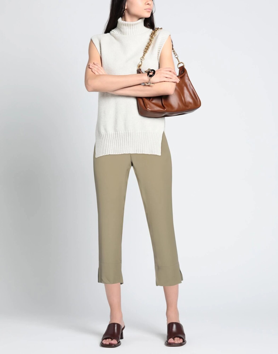 Креп, без аппликаций, одноцветное изделие, завышенная талия, стандартный крой, застежка-молния, застежка на крючки, множество карманов, не подвергать химчистке, не отбеливать, не сушить в стиральной машине, укороченные, брюки прямого кроя