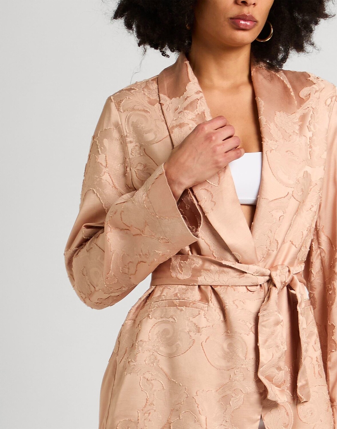 Однобортный пиджак, атлас, жаккард, без аппликаций, одноцветное изделие, воротник с лацканами, длинные рукава, без подкладки, 1 пуговица, множество карманов, разрез сзади, химчистка, нельзя отбеливать, нельзя сушить в стиральной машине