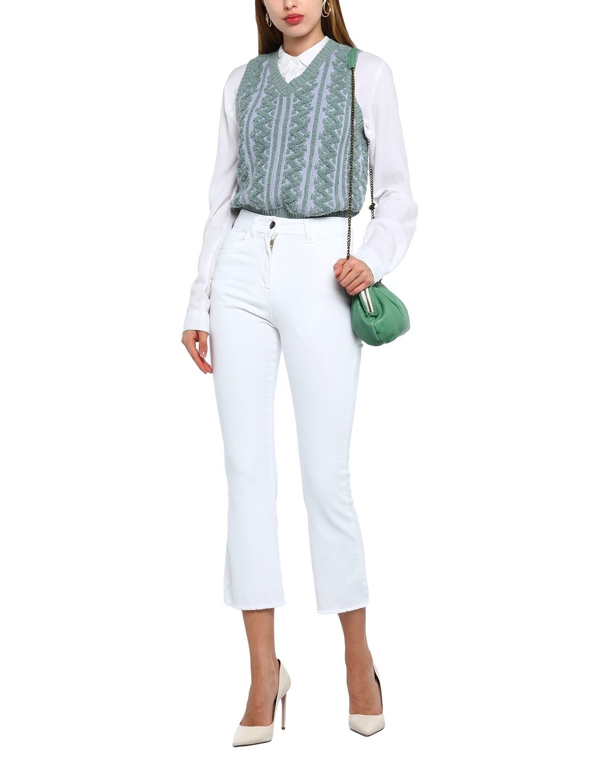 Деним, логотип бренда, одноцветное изделие, цветная стирка, завышенная талия, расклешенный крой, классический крой, застежка-молния, 1 пуговица, множество карманов, стрейч