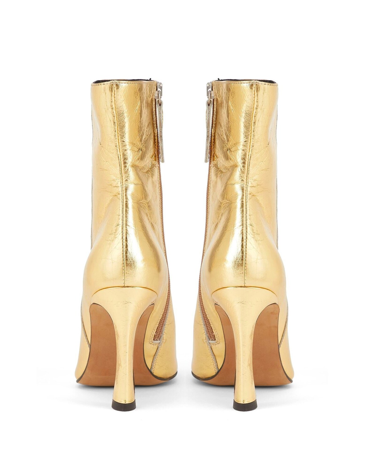 Кожа, металлик, без аппликаций, одноцветное изделие, подкладка кожа, застежка-молния, острый носок, каблук-шпилька, резиновая подошва, содержит нетекстильные части животного происхождения, сапоги из теленка