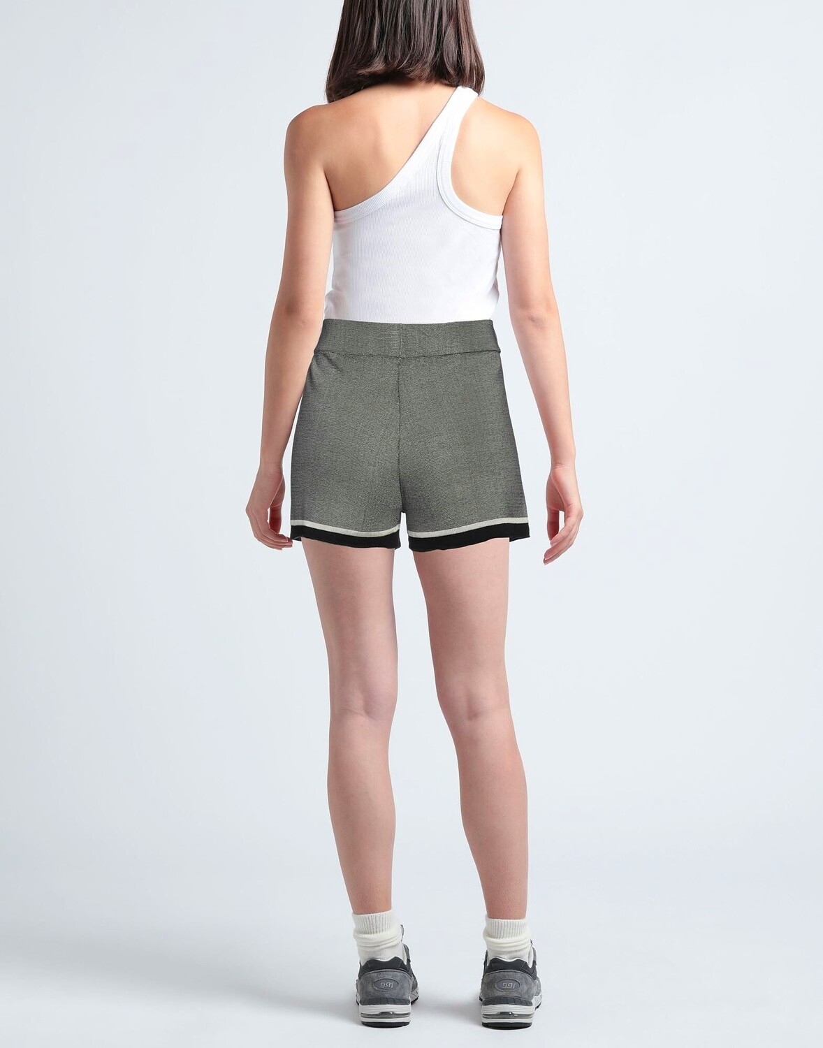 Шорты трикотажные, легкая вязка, без аппликаций, двухцветные, завышенная талия, резинка на талии, без карманов, ручная стирка, не отбеливать, не сушить в стиральной машине.