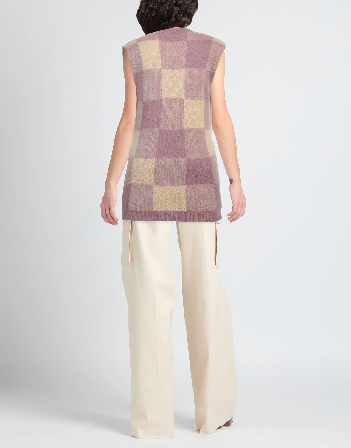 Трикотаж, средней плотности, без аппликаций, в клетку, V-образный вырез, без рукавов, без карманов