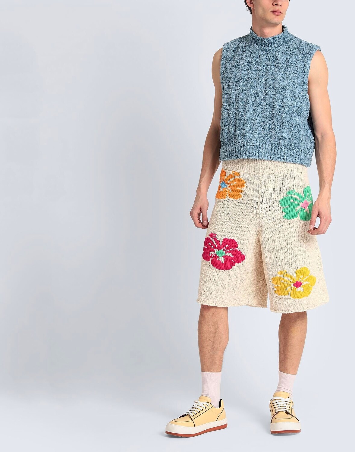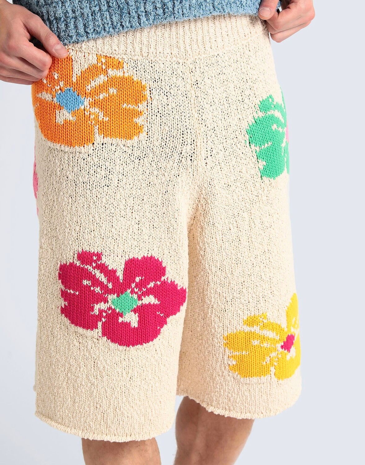 Трикотаж, трикотаж средней плотности, без аппликаций, цветочный принт, завышенная талия, талия на резинке, без карманов, шорты-бермуды