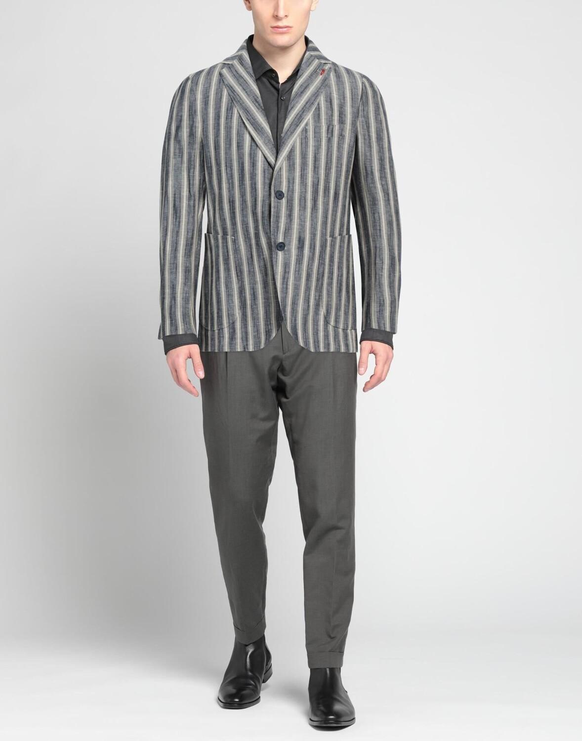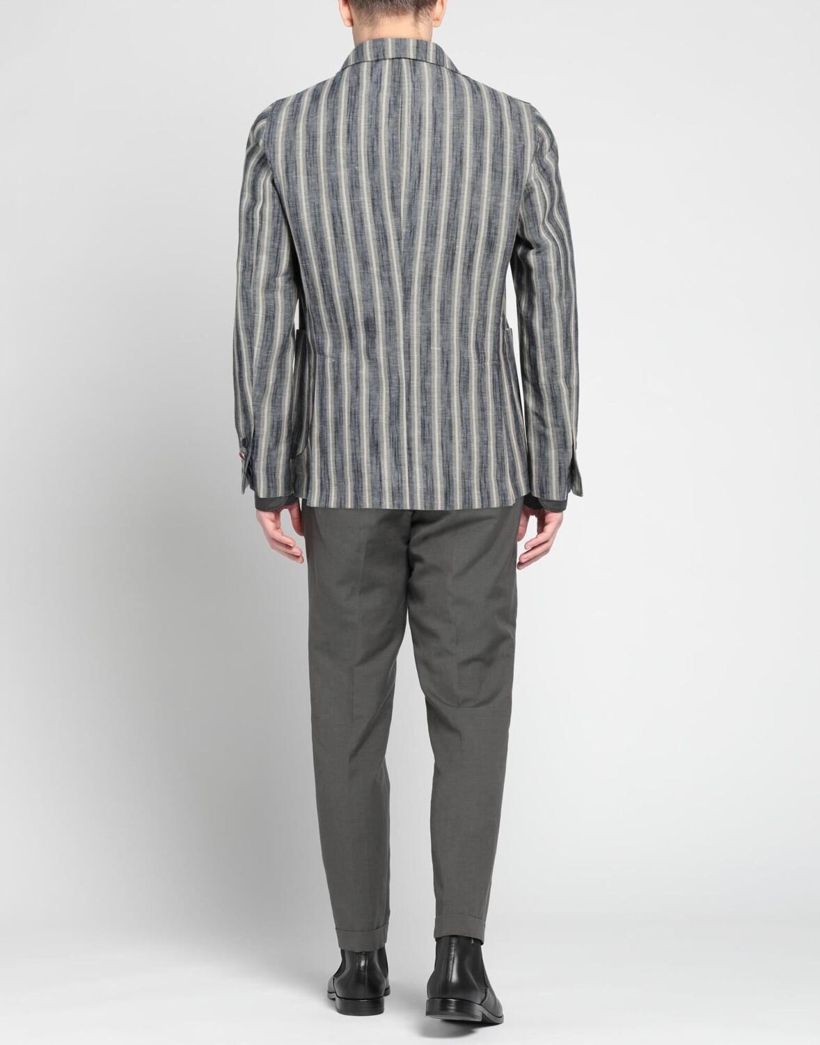 Полотняное переплетение, без аппликаций, разноцветный, в полоску, воротник с лацканами, однобортный, длинные рукава, манжеты на пуговицах, внутренняя часть на частичной подкладке, пуговицы, множество карманов, двойные шлицы сзади, однобортный пиджак