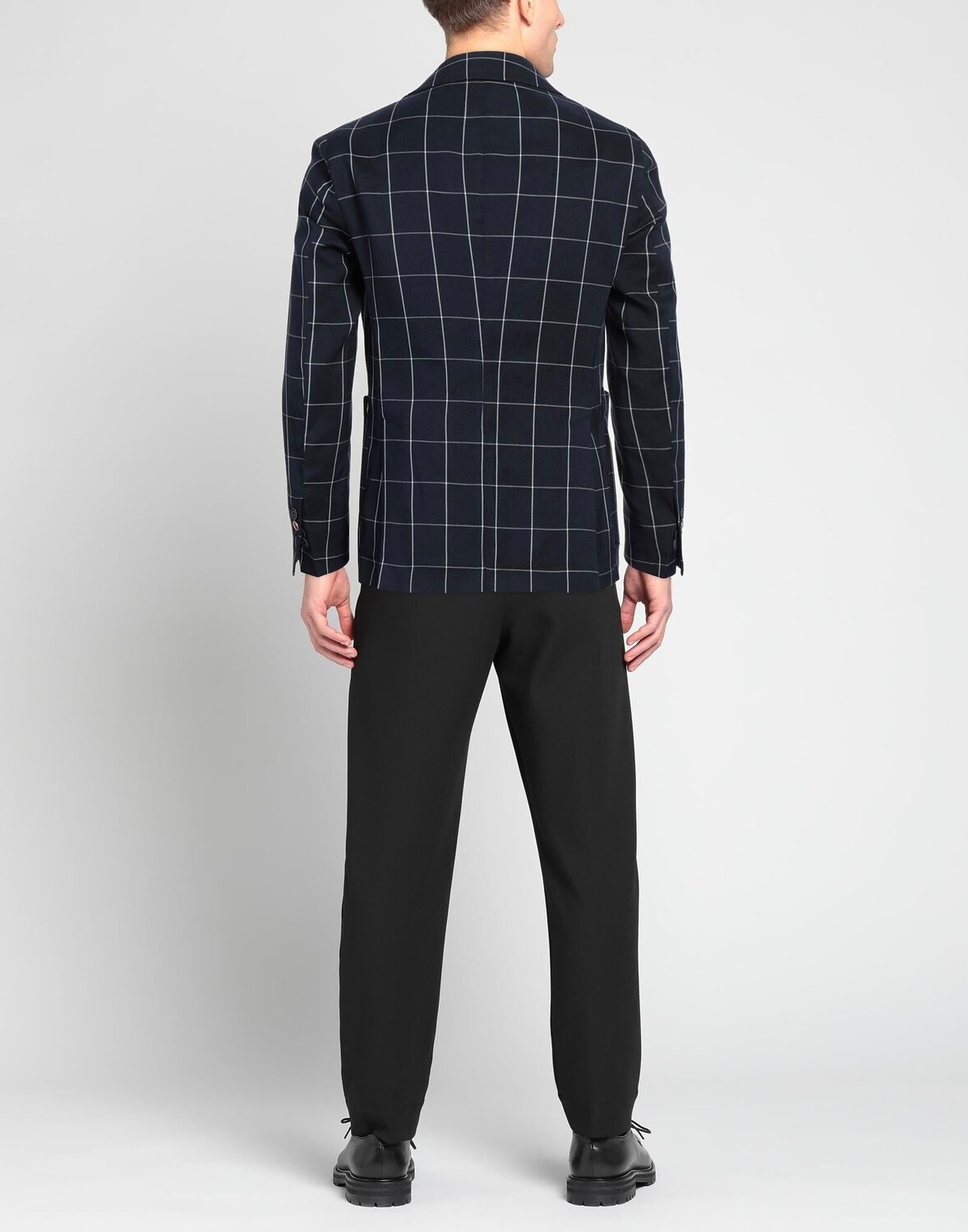 Полотняное переплетение, без аппликаций, клетка, воротник с лацканами, однобортный, длинные рукава, манжеты на пуговицах, внутренняя часть на частичной подкладке, пуговицы, множество карманов, двойные шлицы сзади, стрейч, однобортный пиджак